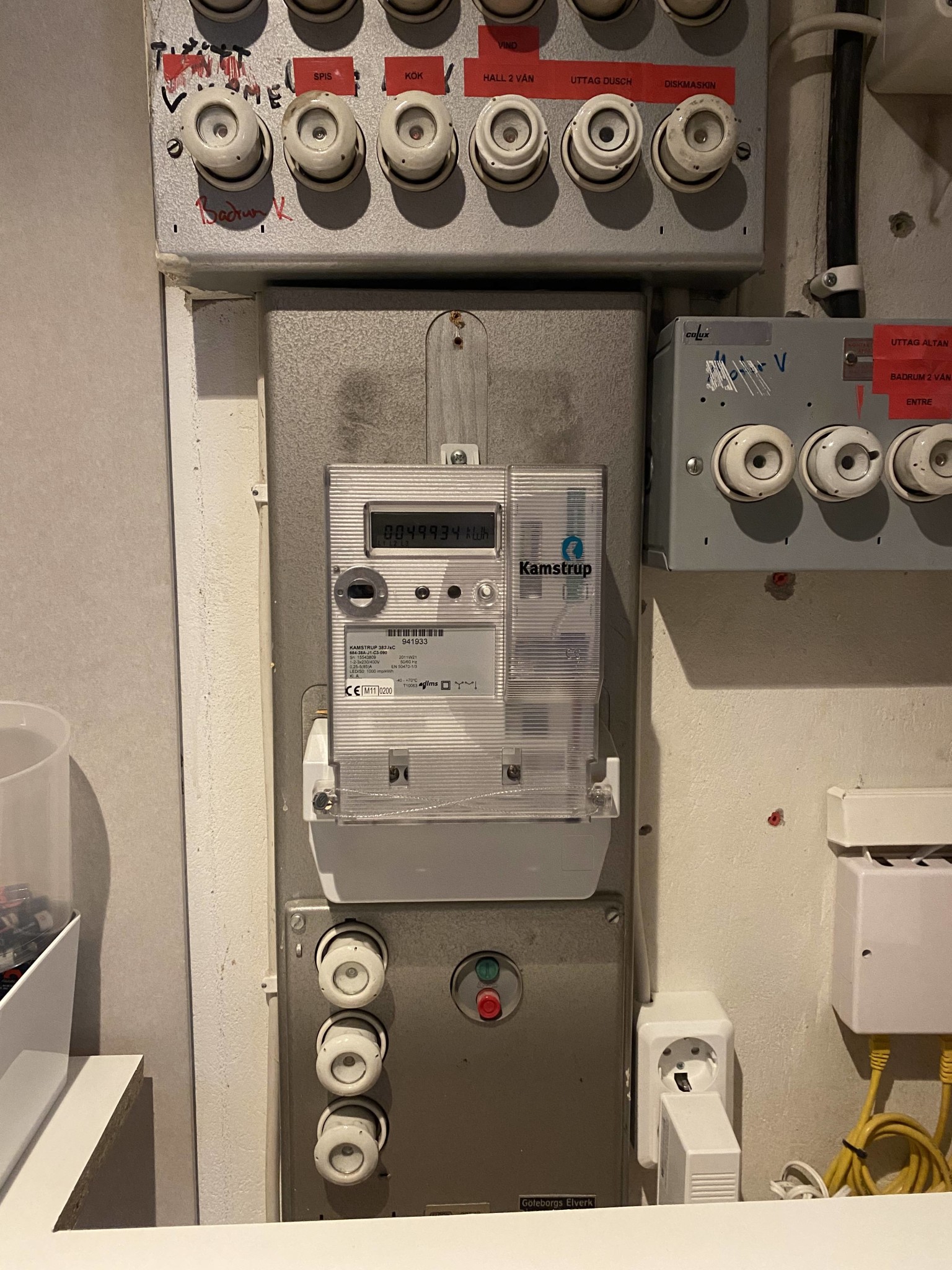 byta denna gamla brytare till en ny, denna brytare all inkommande spänning. För att sedan ha var sin HB i varje central som bryter dras spänning?