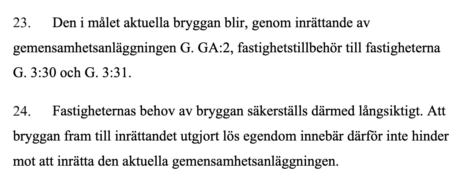 Målet hade varit mer intressant om de i gemensamhetsanläggningen delägande fastigheterna ägdes av någon annan är de som äger bryggan. Då hade det om jag förstår HD rätt inte blivit någon GA.