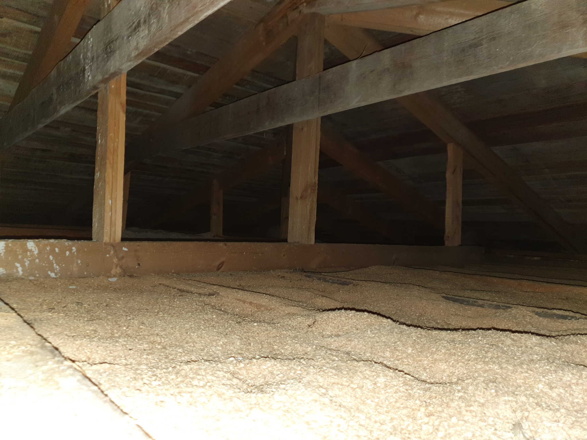 Glömde mäta på vinden. Första takstolen syns inte på bilden, den sitter intill murstocken.