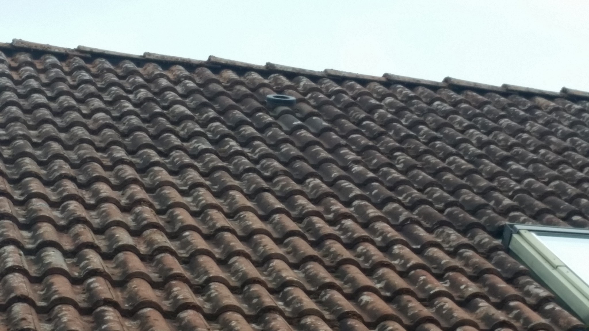 Helgens storm blåste ner takhuven (heter det så?) som ska sitta på avluftningen till avloppet...
