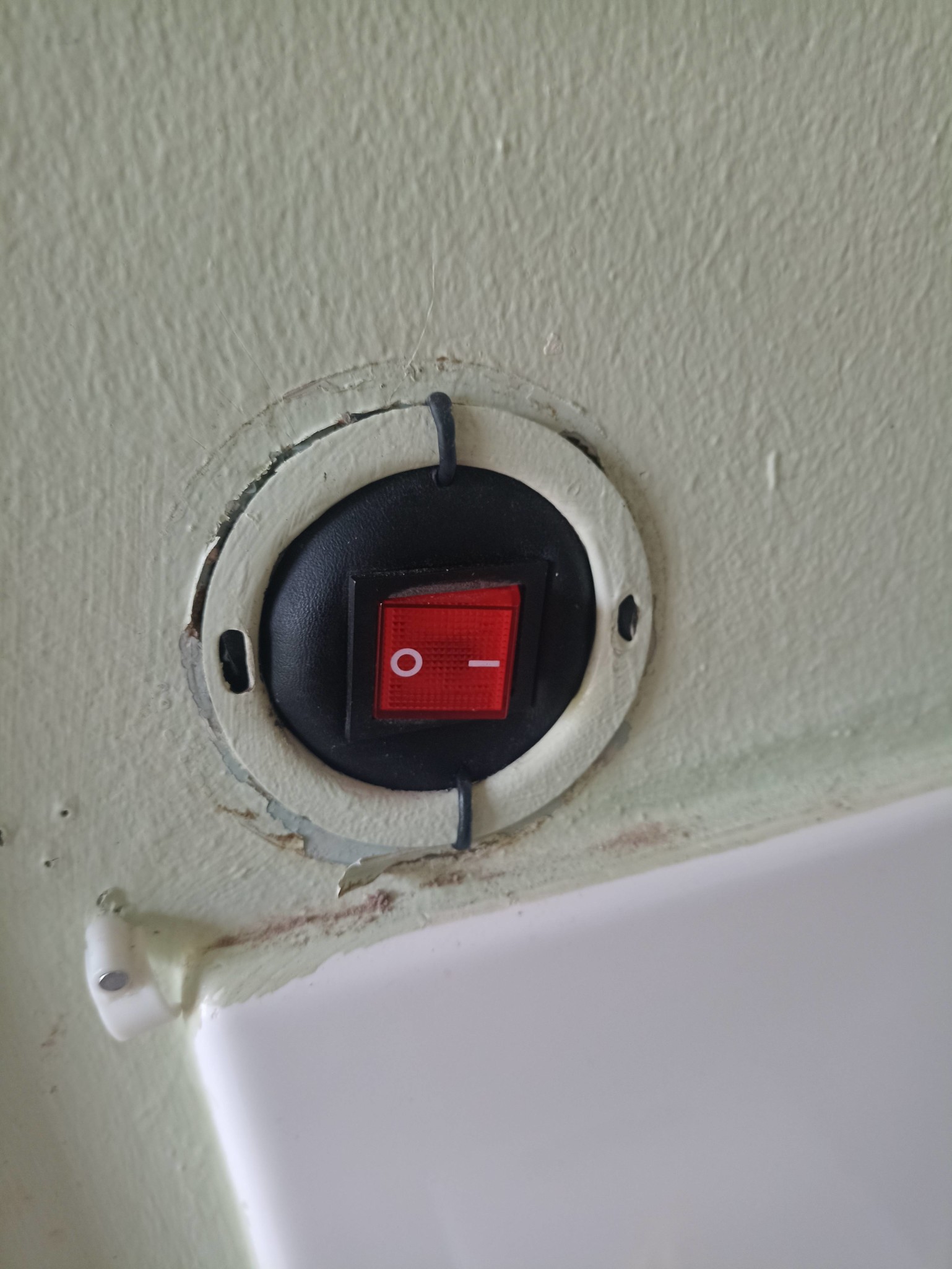 Som sagt själva brytaren är nog OK. Men monteringen ser inte OK ut. Klon som skall hålla fast den i dosan ligger för nära den oskyddade lödningen.