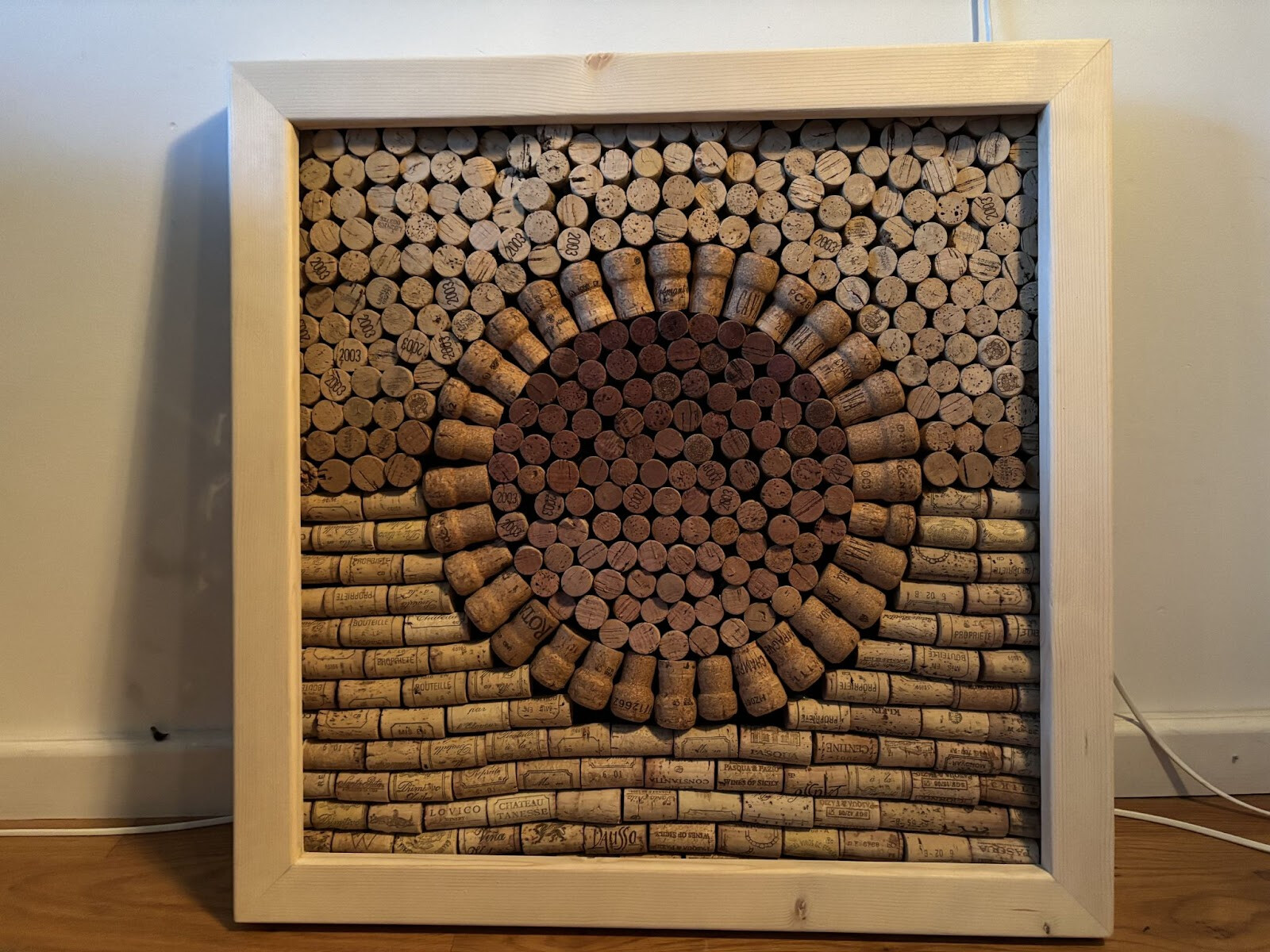 började med en cirkel fortsatte sen med lite både liggande och stående kork för att testa det som komma skulle