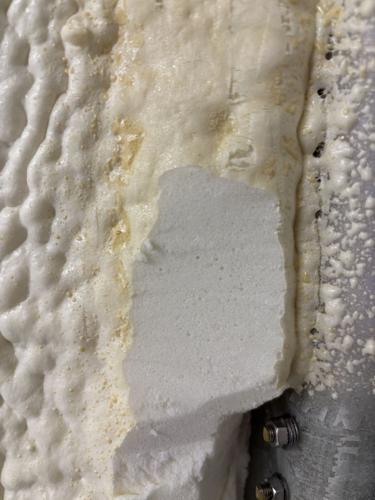 Över lag så var jag nöjd med resultatet. på vissa ställen var det lite dock lite väl tunt och ojämnt, det skulle bli svårt att sätta ett jämnt lager korkar över det. Jag gjorde en grovtrimmning av skummet och köpte sen två mini-kit frothpak för att bättra på runt vissa dosor och slangar.