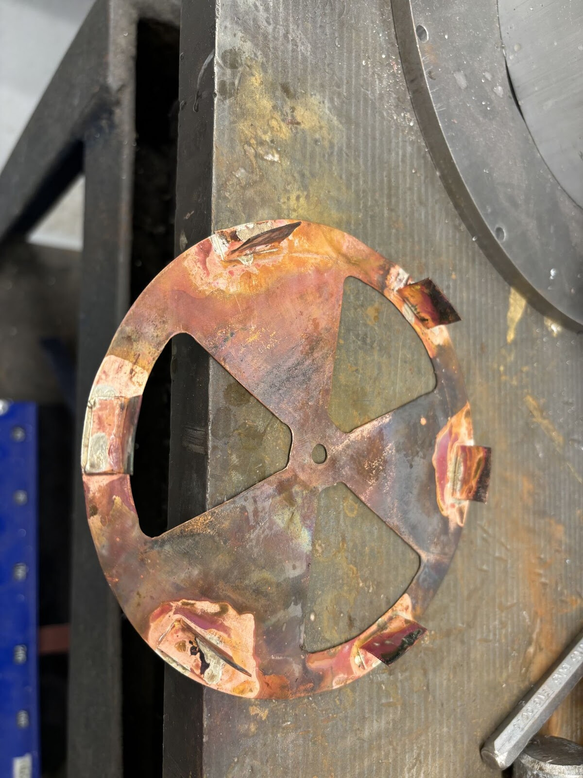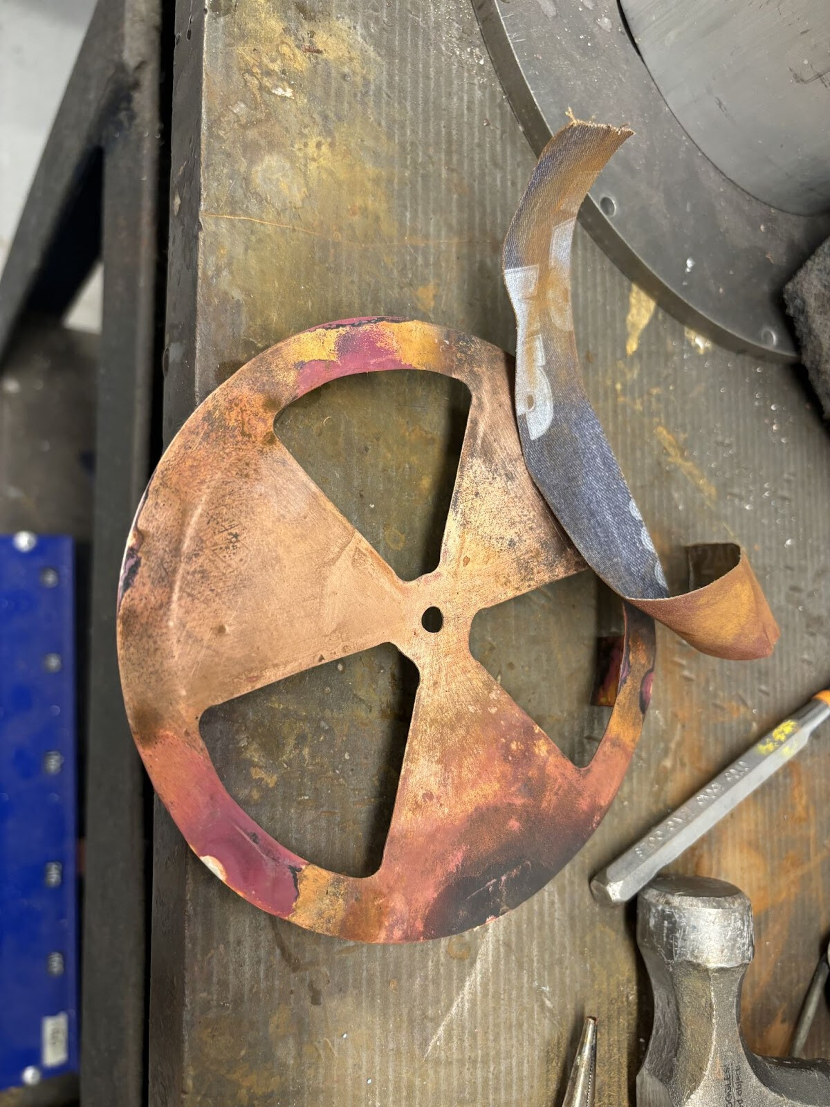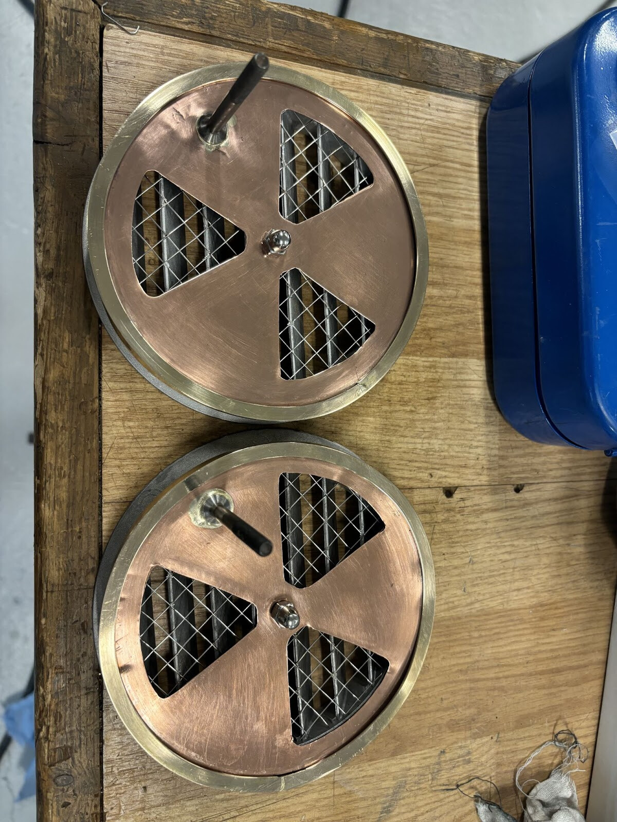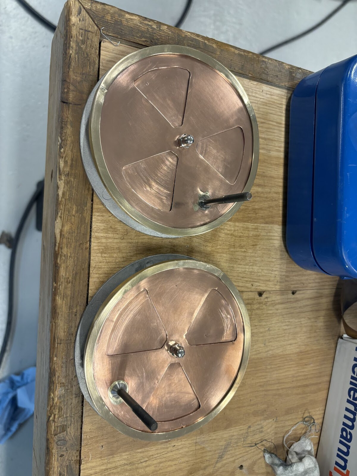 Diskarna klipptes, borrades och filades ut