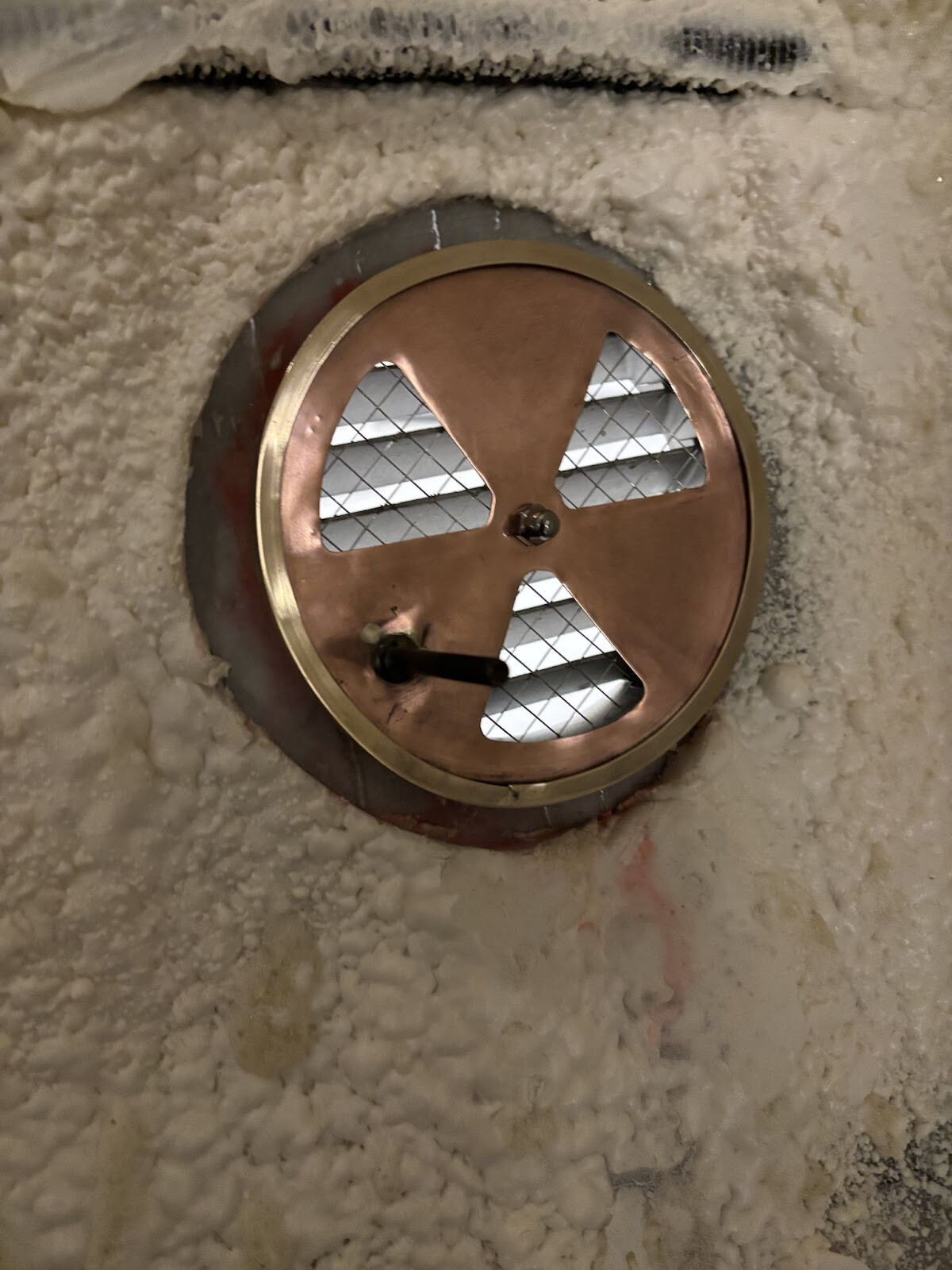 Som tidigare nämnts är ventilationen viktig i en bastu och två platser utan isolering är förberedda för till- och frånluft. Men nu var frågan vilken typ av ventiler vi skulle använda här. Om man tittar på traditionella bastuventiler så skulle de behöva modifieras ganska rejält för att kunna monteras i den tunna aluminiumplåten. Dessutom skulle de vara synliga inifrån vilket ger oss en möjlighet att designa och tillverka något unikt som skulle bli som ett smycke som gömmer sig bland all kork. En tanke var att jobba med kopparplåt som skulle kunna poleras upp och bli högblankt. Det skulle matcha korkarna väl och det skulle kunna bli ett genomgående tema invändigt då det är fler detaljer som skulle vara bra att kunna göra i metall.Jag började skissa på olika mekanismer för att öppna och stänga ventilerna och fastnade för en klassisk “grillventil”. Den bygger minimalt i tjocklek, skulle vara funktionell och den skulle kunna bli ganska snygg om man ger den lite kärlek..