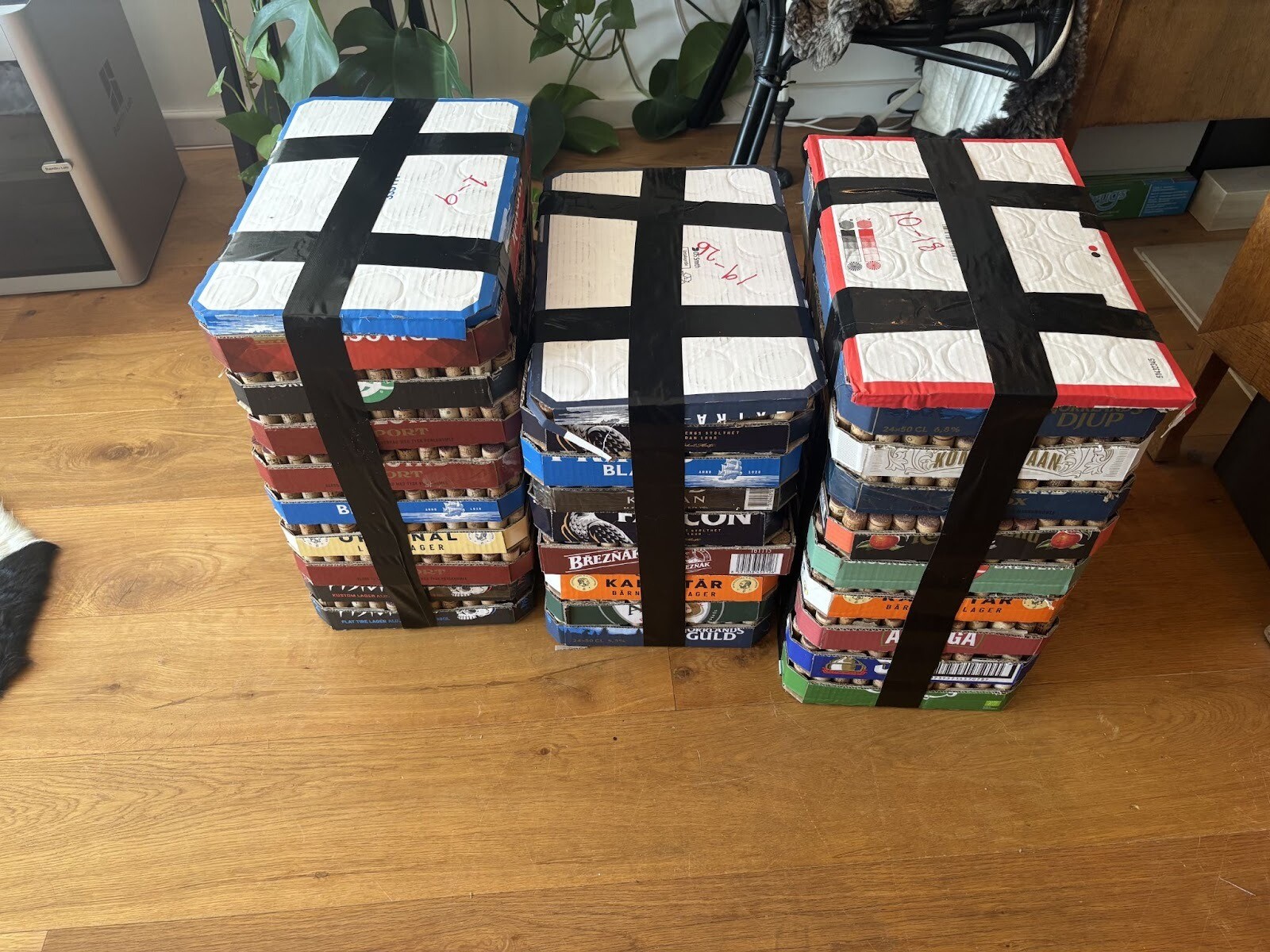 Jag gick också till systembolaget och fick en hel massa ölflakskartonger. Perfekta lådor för korksortering! Sen var det bara att ta en låda i handen och gå runt och plocka över kork till den. Genom att hela tiden plocka de mörkaste, alternativt de ljusaste korkarna, numrera och hålla ordningen på lådorna kan vi skapa en fin gradient.