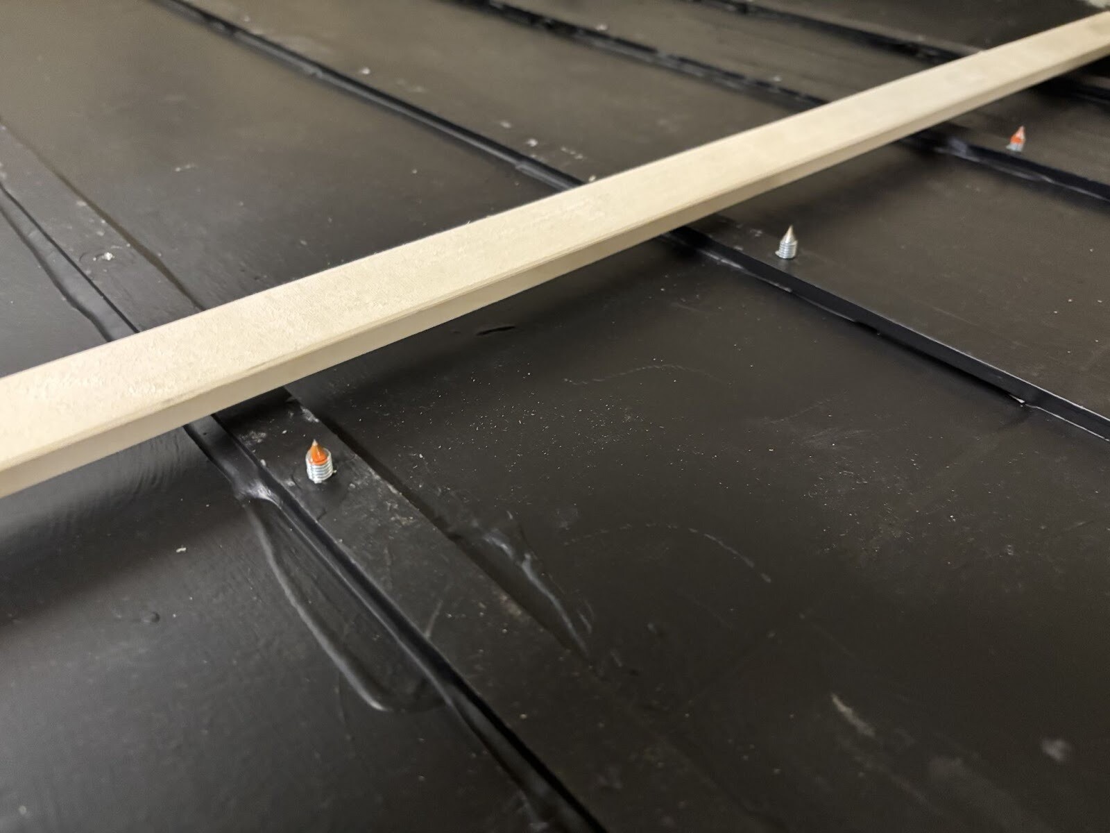 Jag kapade upp dem till längd och började sen att markera ut hålen för skruvarna. Det gjorde jag genom att skruva i de små spetsade skruvarna en rad åt gången