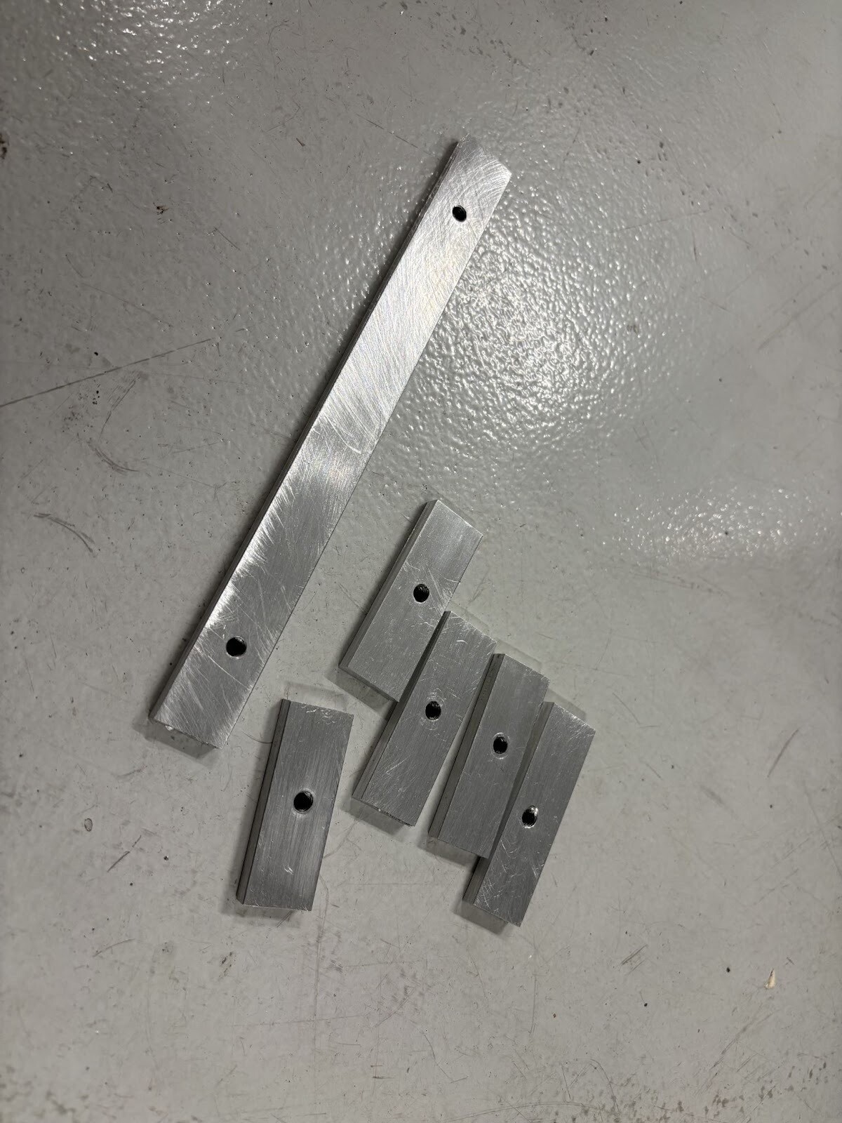 Sen placerade jag ut en liten styrningsgrej som jag printat ut över varje skruv. De passade över aluminiumstängerna och hade ett hål för skruven.