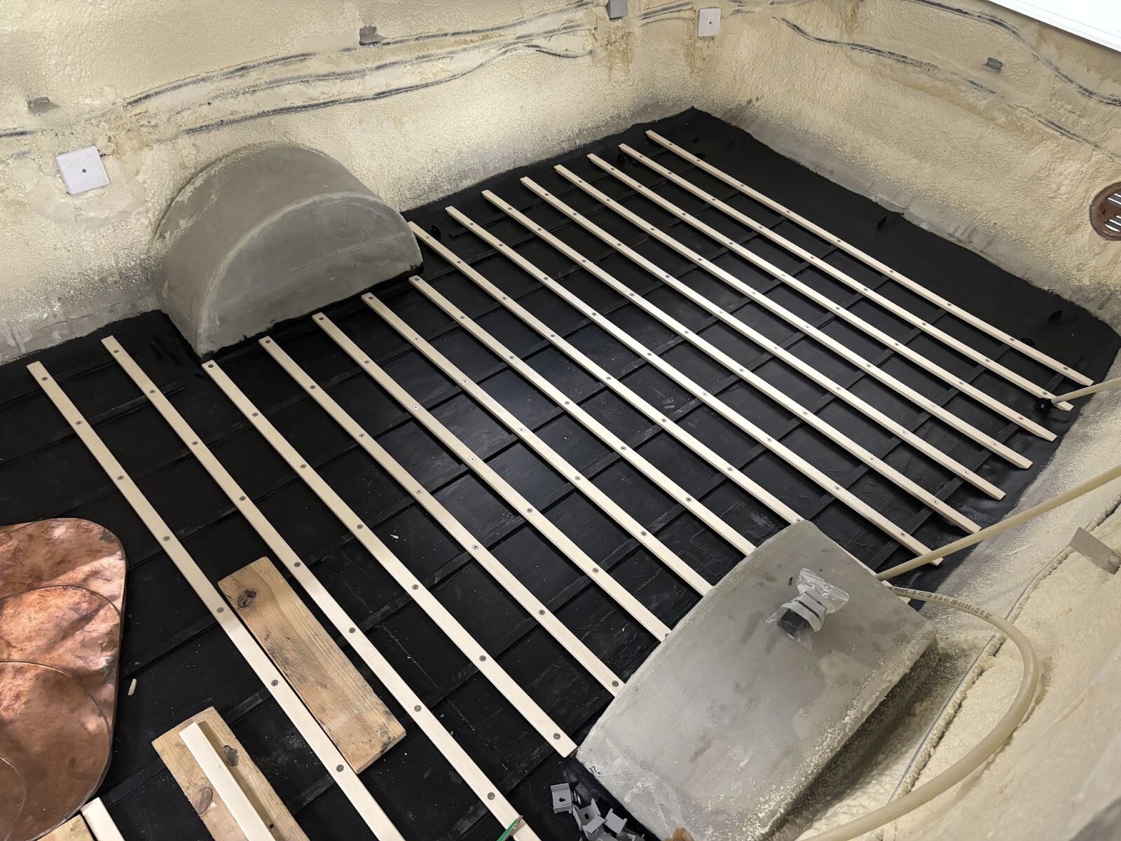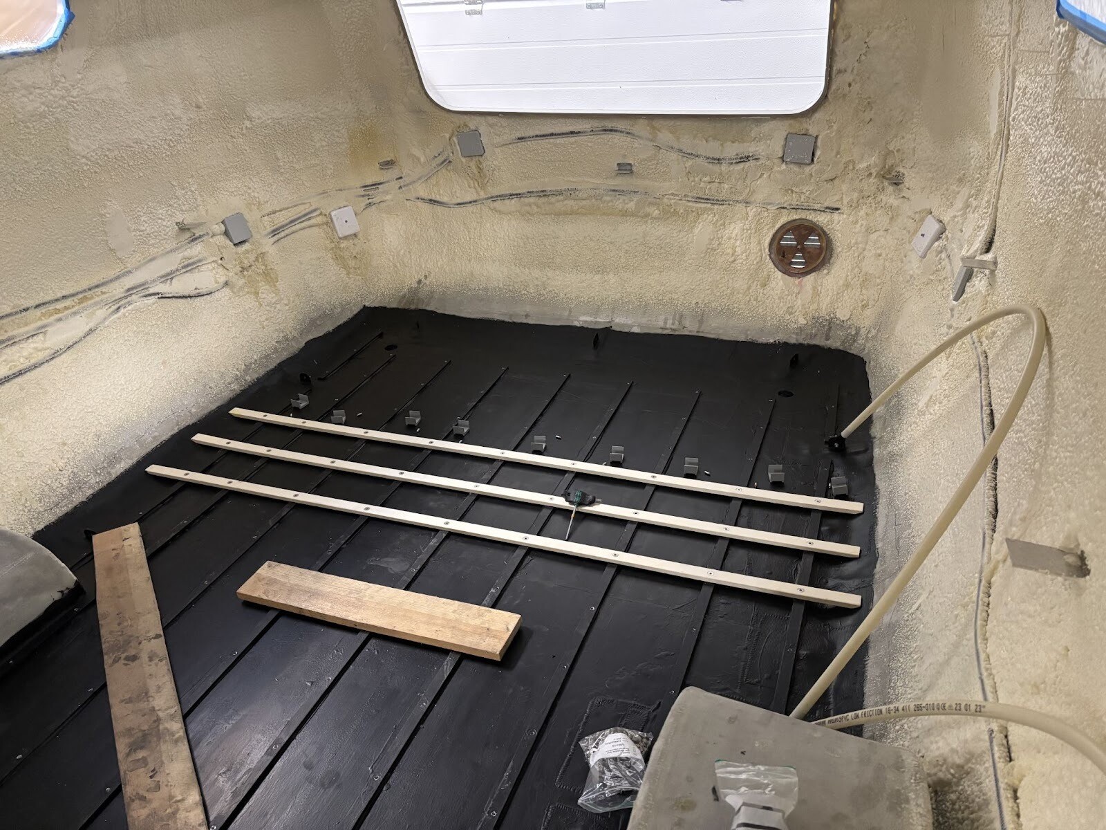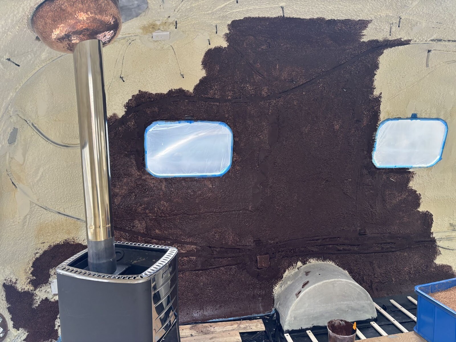 Kork-silikonblandningen kanske hade kunnat fungera som isolering istället för PU-skummet också om du kunnat hitta på ett bra sätt att applicera det på väggarna jämnt och fint i lagom tjockt lager.