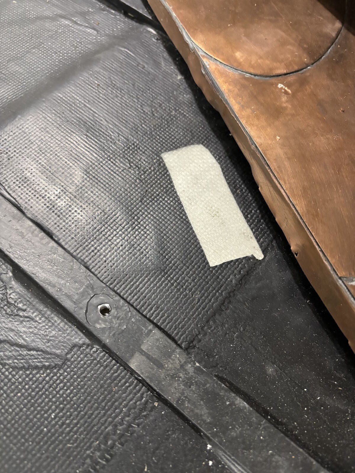 Bunken på plats, temporärt uppsatt med tejp och nymålade skorstensdelar