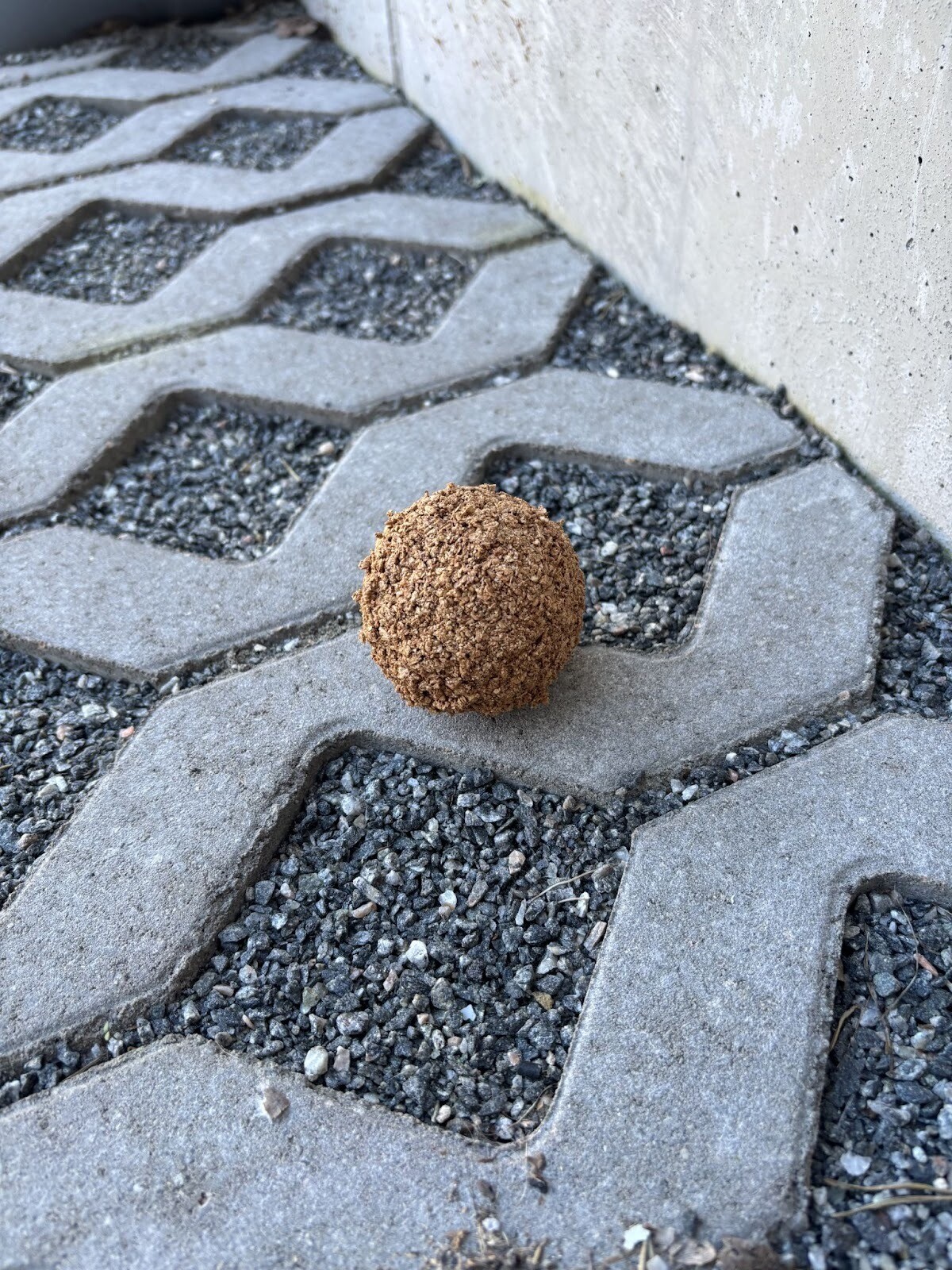 Jag började att mala några korkar för hand och blanda dem med silikon tills jag hade en krambar massa. Jag rullade det till en boll och lät den härda. Resultatet ser mycket lovande ut, en solid men ändå relativt lätt korkboll!