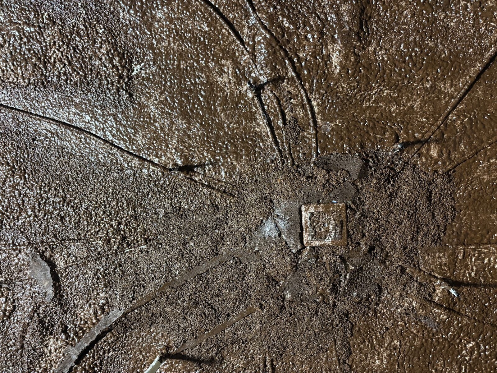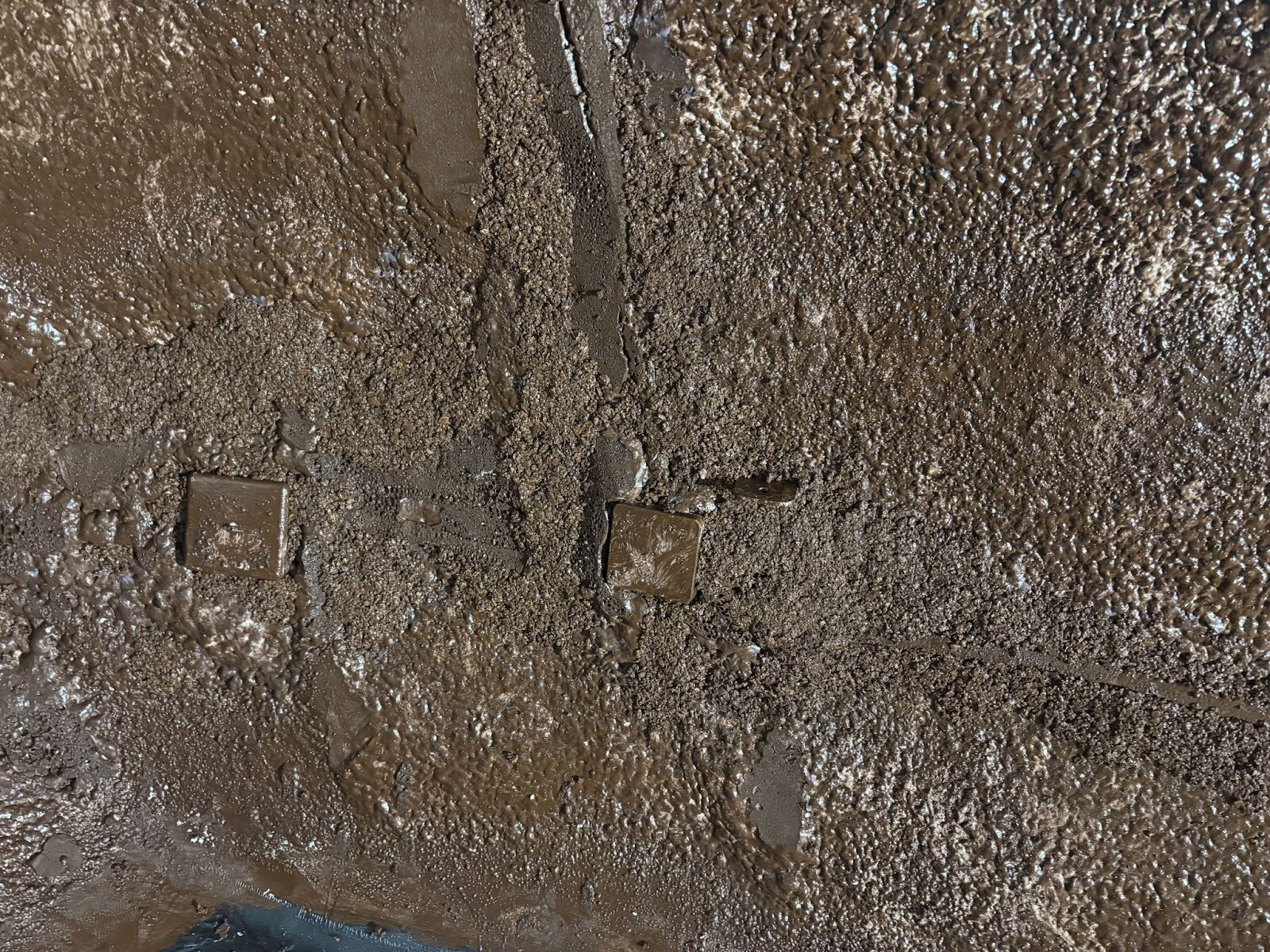 Test med kork, silikon och pigment som blandas och knådas upp på väggarna