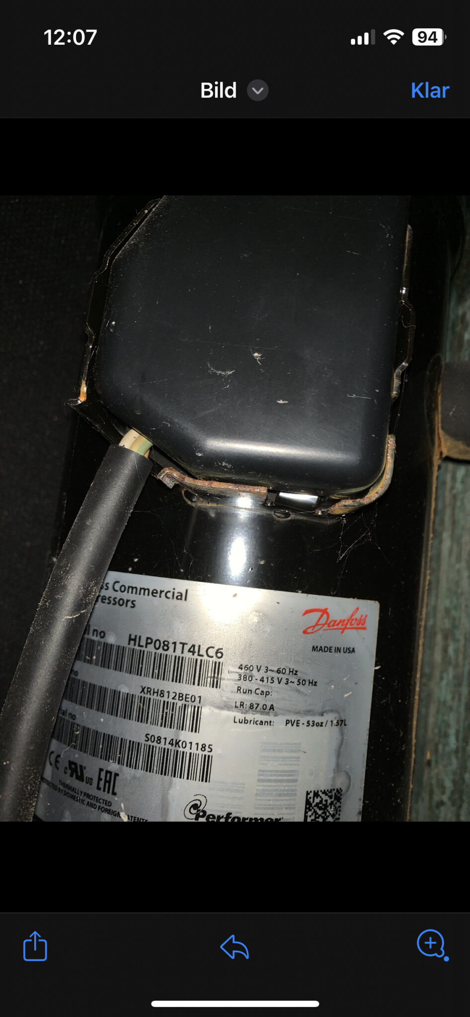 spec nedan, ni får hojta till om mer info behövs, kan ävrn länka kompressorn
