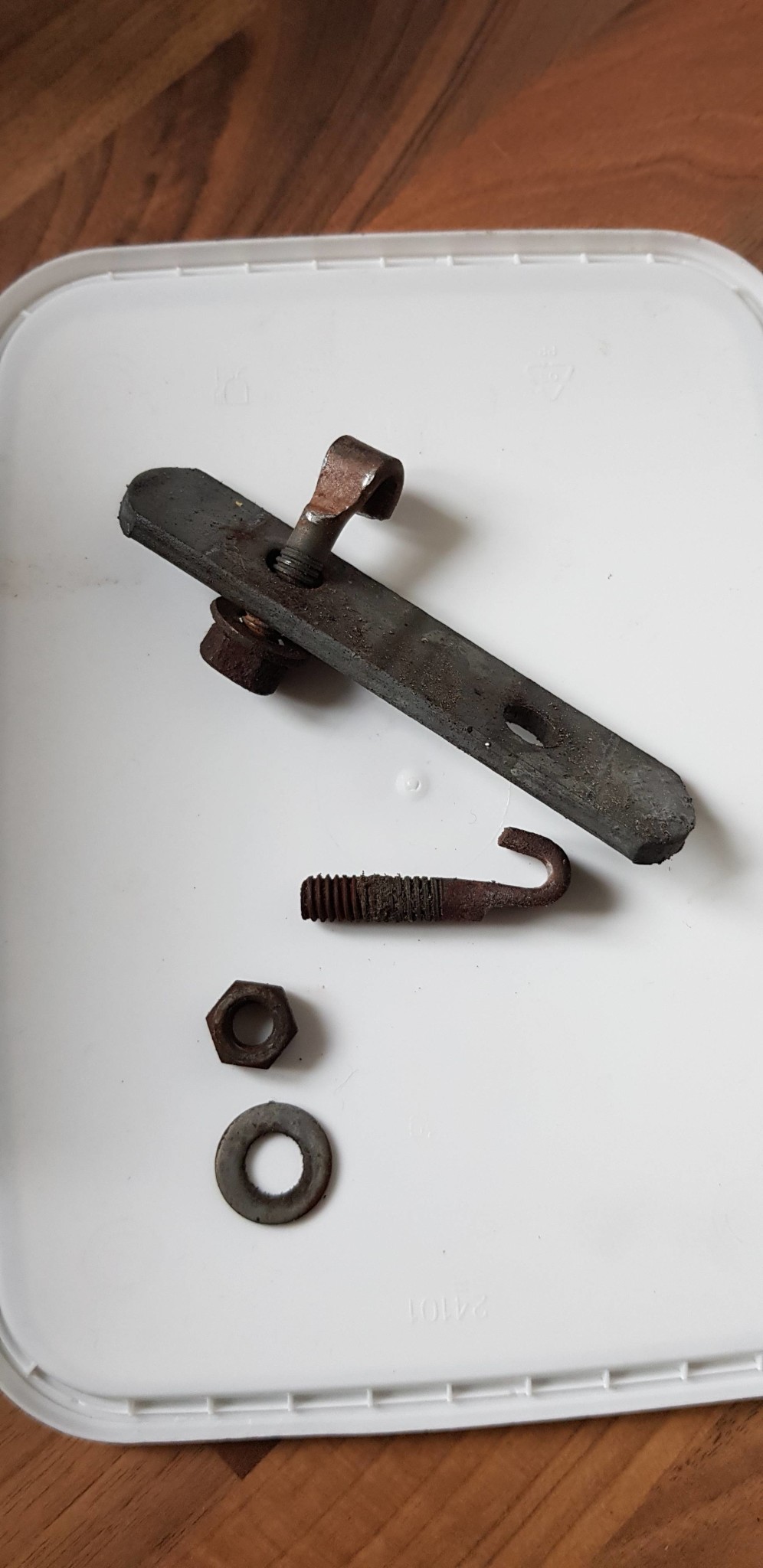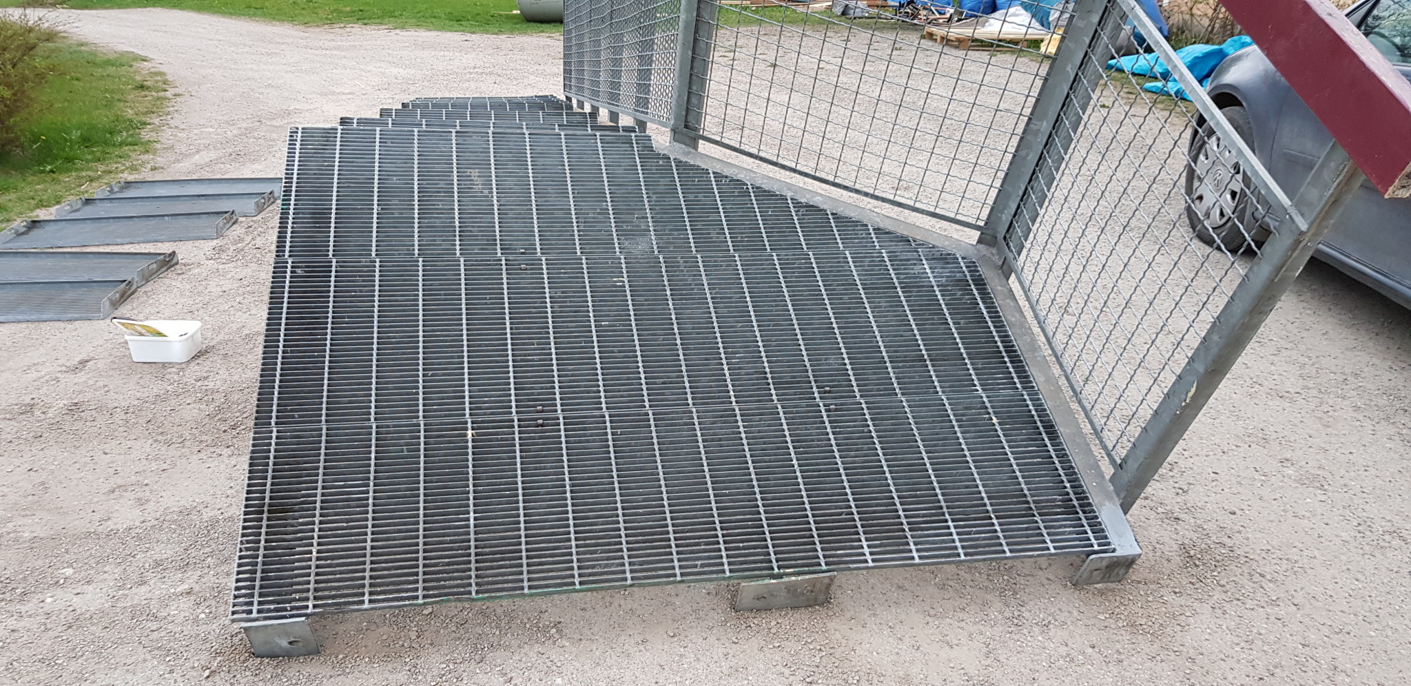 Perfekt till loftet på garaget. Men gallret på plattformen hålls fast med ett par gängade krokar, när jag skruvat isär trappan inför flyttning och montering så blev det gängpaj på två av dom.