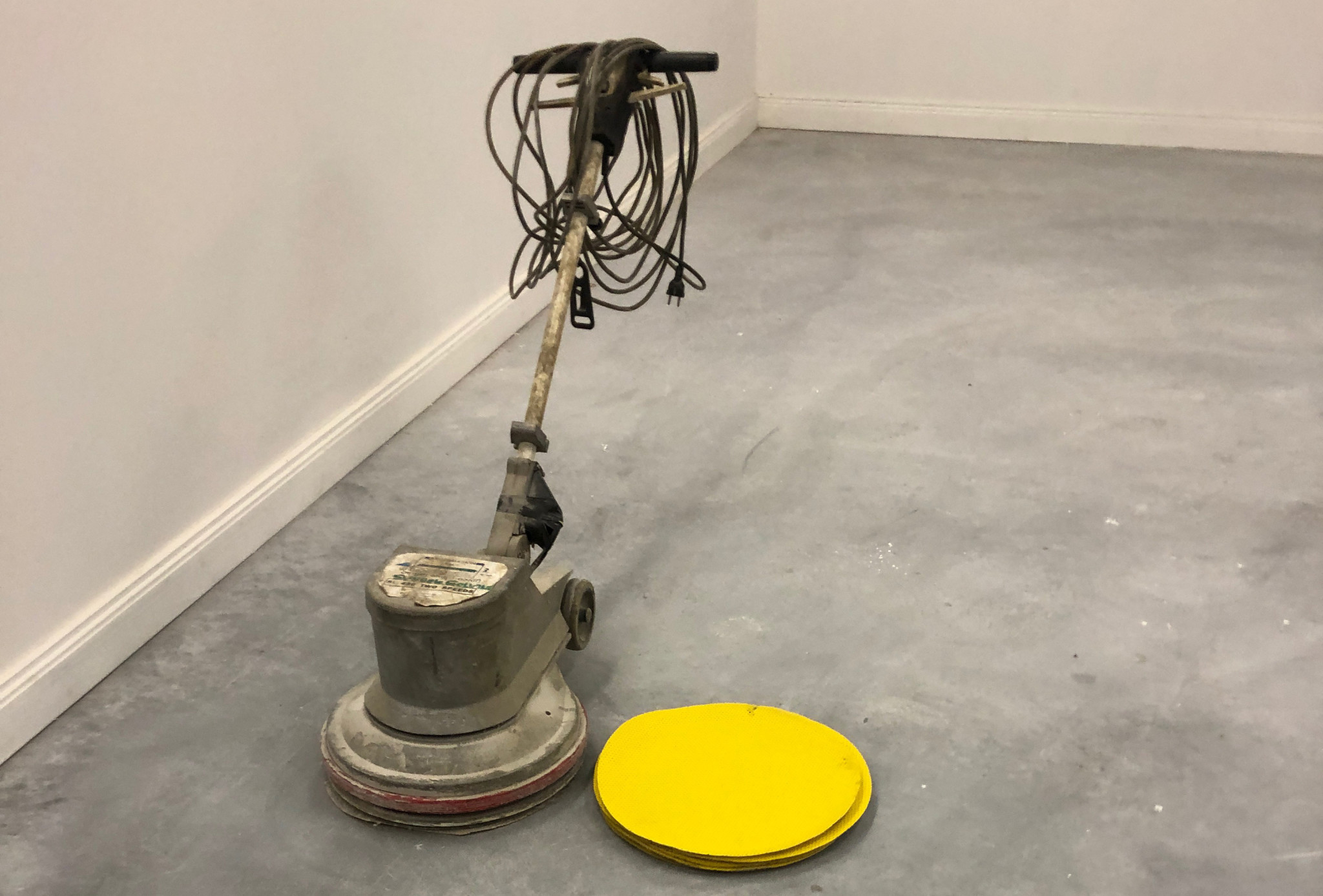 Jag fick låna en rondelslip av en snäll granne att putsa bort betongskinnet på en nygjord betongplatta innan det ska målas golvfärg. Inte årets modell men den funkade och gjorde vad som skulle utföras.