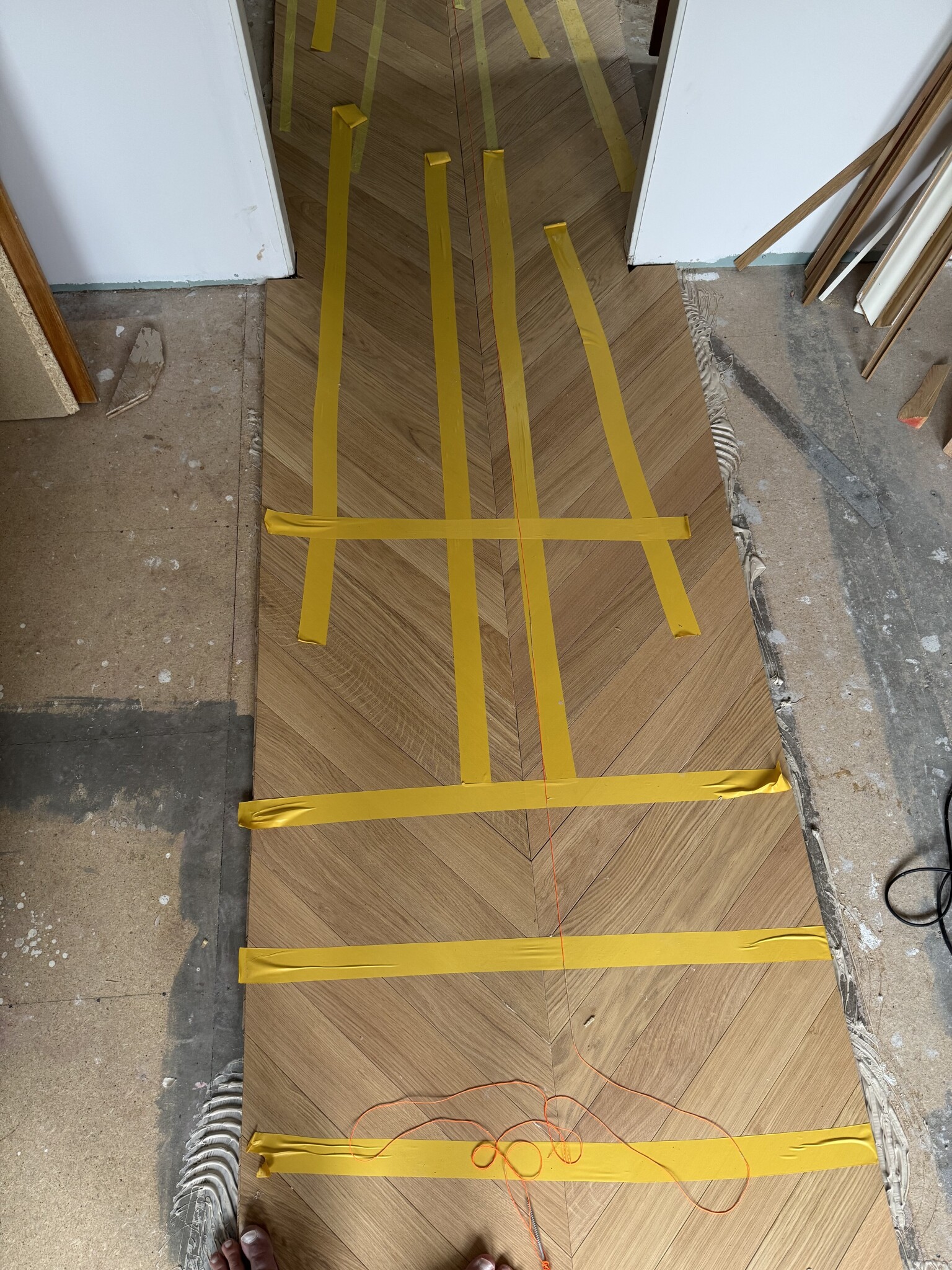 Är det någon som lagt fiskbensparkett eller chevronparkett med lim? Hur har ni gjort?