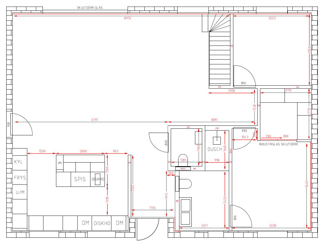 Jag har sänkt måttet till 1660mm på min ritning med att göra väggen 200mm på kortsidan pga jag tyckte det var för djupt.