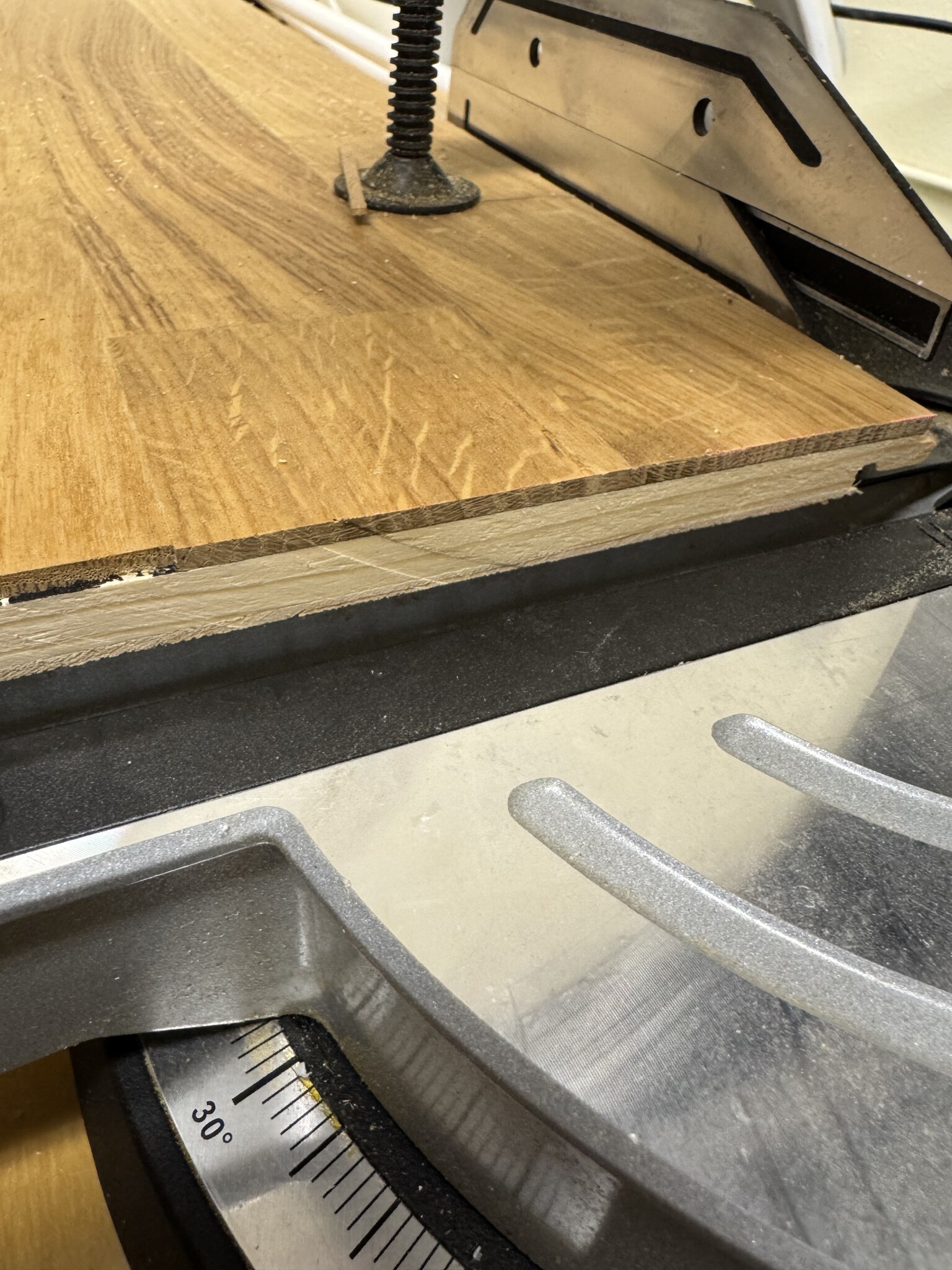 Första bilden är flera kap bredvid varandra för att visa att det händer på samma ställe och den andra för att visa uppifrån där klingan gått tog även och kapade en bit parkettgolv då det var det bredaste jag hade liggande.