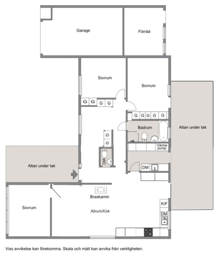 - Ha vårt sovrum där sällskapsrummet är idag och istället bygga ut vid köket och göra stort vardagrum/kök och inglasad altan i anslutning.