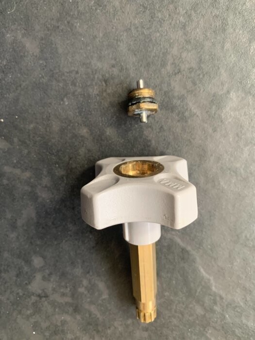 Såhär är en radiatorventil uppbyggd, från vänster till höger: