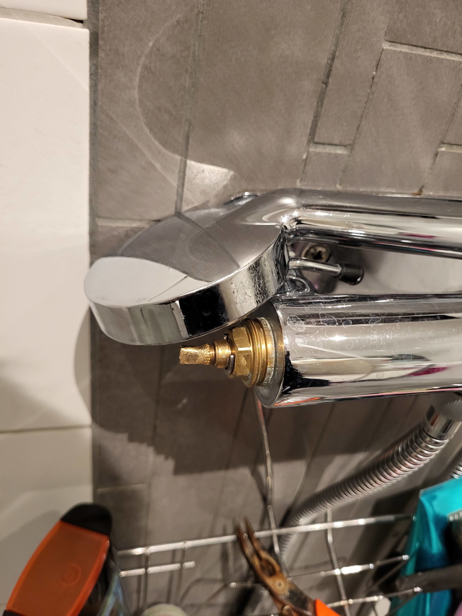 Hoppas på att det går att byta bara mässingsdelen och vred.