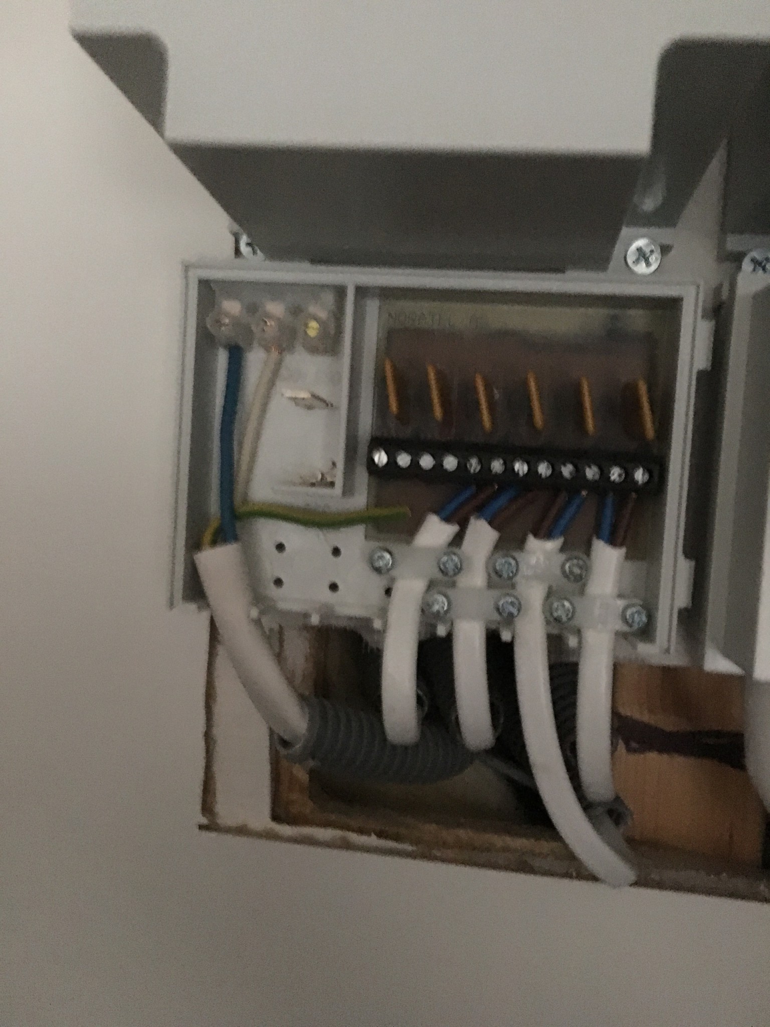 Bild på hur det ser med gamla trafon och kablar från fyra spottar: