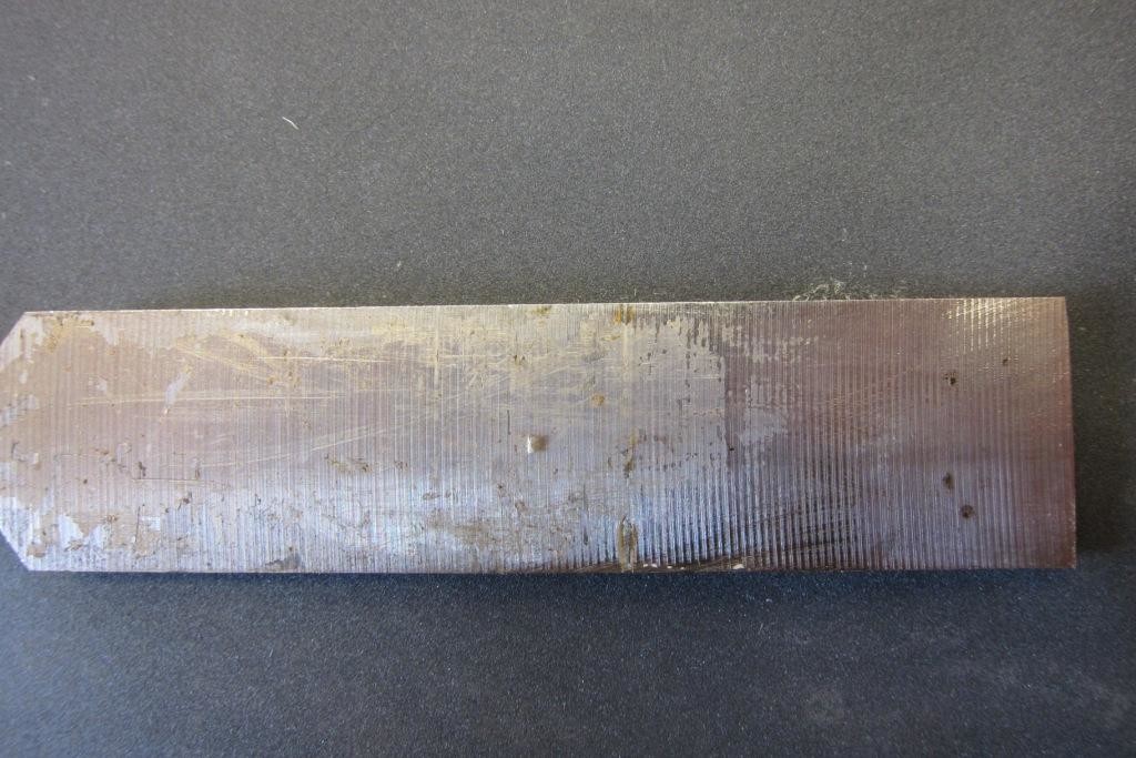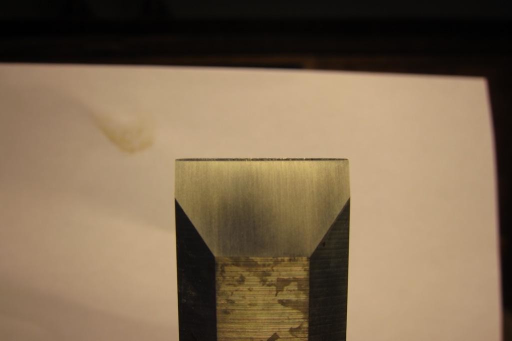 Men har du verkligen, som det ser ut på bilden, planat HELA baksidan? Det kanske inte är någon som har varit tydlig på den punkten men för att det skall bli vasst så räcker det att det är plant precis där eggen möter baksidan. Av praktiska skäl och självklart för att slippa göra det momentet fler gånger efter hand som järnet slits ner så brukar man nöja sig med att plana de nedersta 2-3 centimetrarna. Men du tyckte ju detta var kul och snyggt blir det så då gör det ju inget.