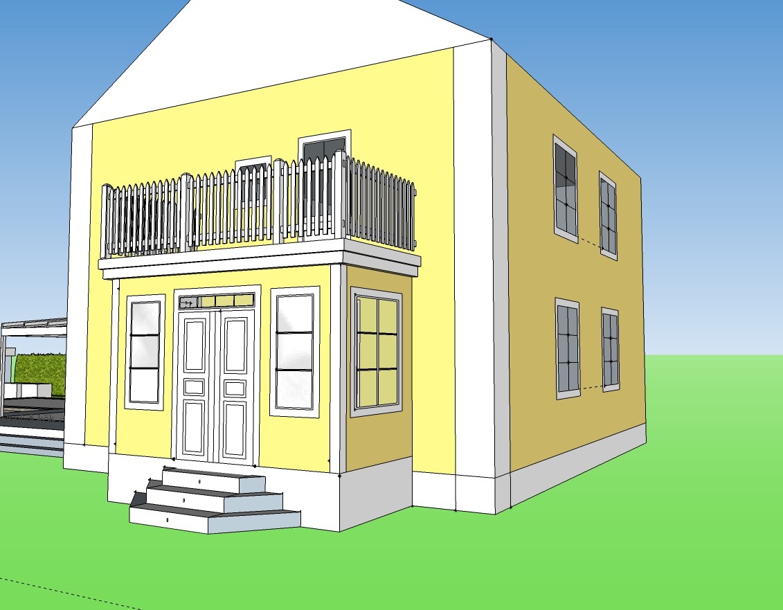 Vi vill gärna behålla samma stil på entrén som övriga huset och på kortsidorna kommer vi att ha samma fönster som övriga huset dvs 12x15 2 lufts med spröjs. På dörrsidan/långsidan väger vi mellan att ha smala enlufts-fönster 6x15 eller ett bredare 8x15 sannolikt en-luft men med samma typ av spröjs. Det sista alternativet (så som bygglovet ser ut) är lite bredare två-luftfönster på dörrsidan, men då finns inte plats för bredare dörrfoder som det är på övriga huset.