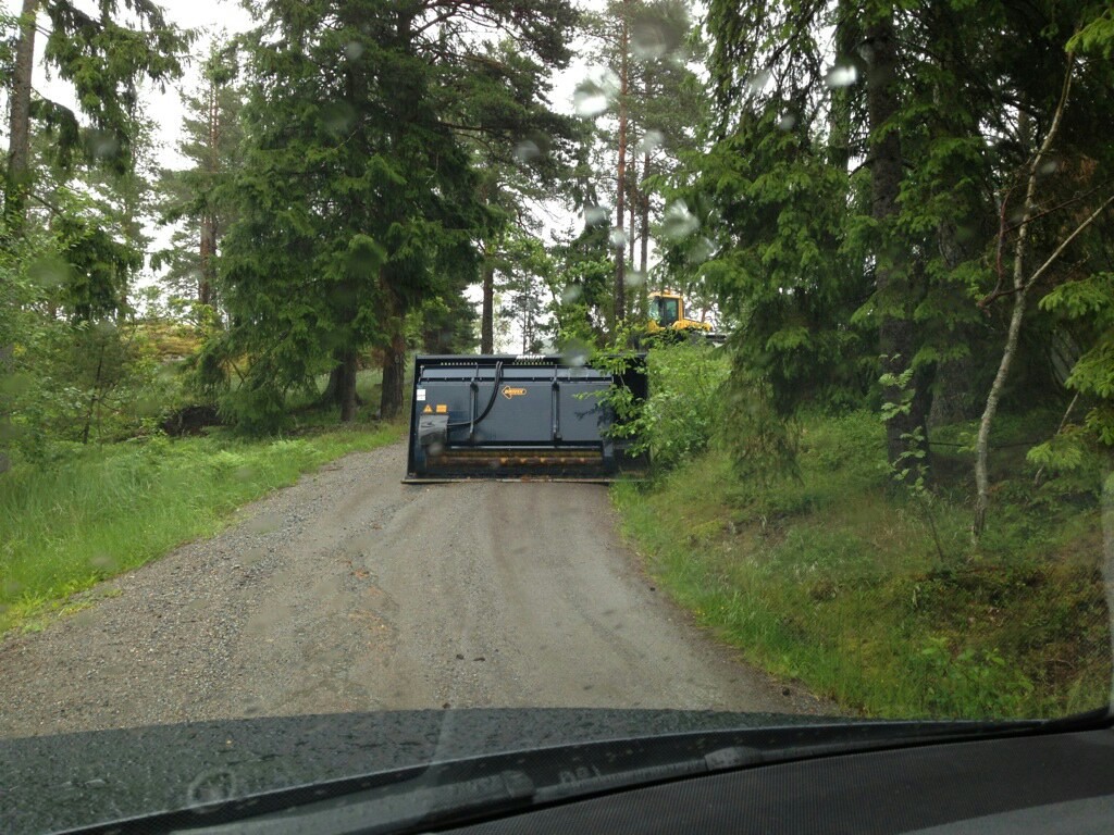Kortfattat om det som hänt kronofogden har trätt in och han har fått ett föreläggande. Alla saker är flyttade förrutom grus avloppsrör belysning etc. Men han har tagit detta åt sig men ändå överklagat och menar på att jag skulle kunna komma förbi hans skopa han ställde upp (dock inte med min bil om jag velat köra längre än bara förbi än bara skopan då dvs bifogar bild och det är inte slätt å fint som det ser ut utan stora stenar gömda) att han är oskyldig till vandaliseringen.... Scck...... Och påpekat gränsdragningen på bifogade bilder till kfm på millimetern trots att markeringarna syns tydligt under min streckade linje... Fortsättning följer när jag vet mer..