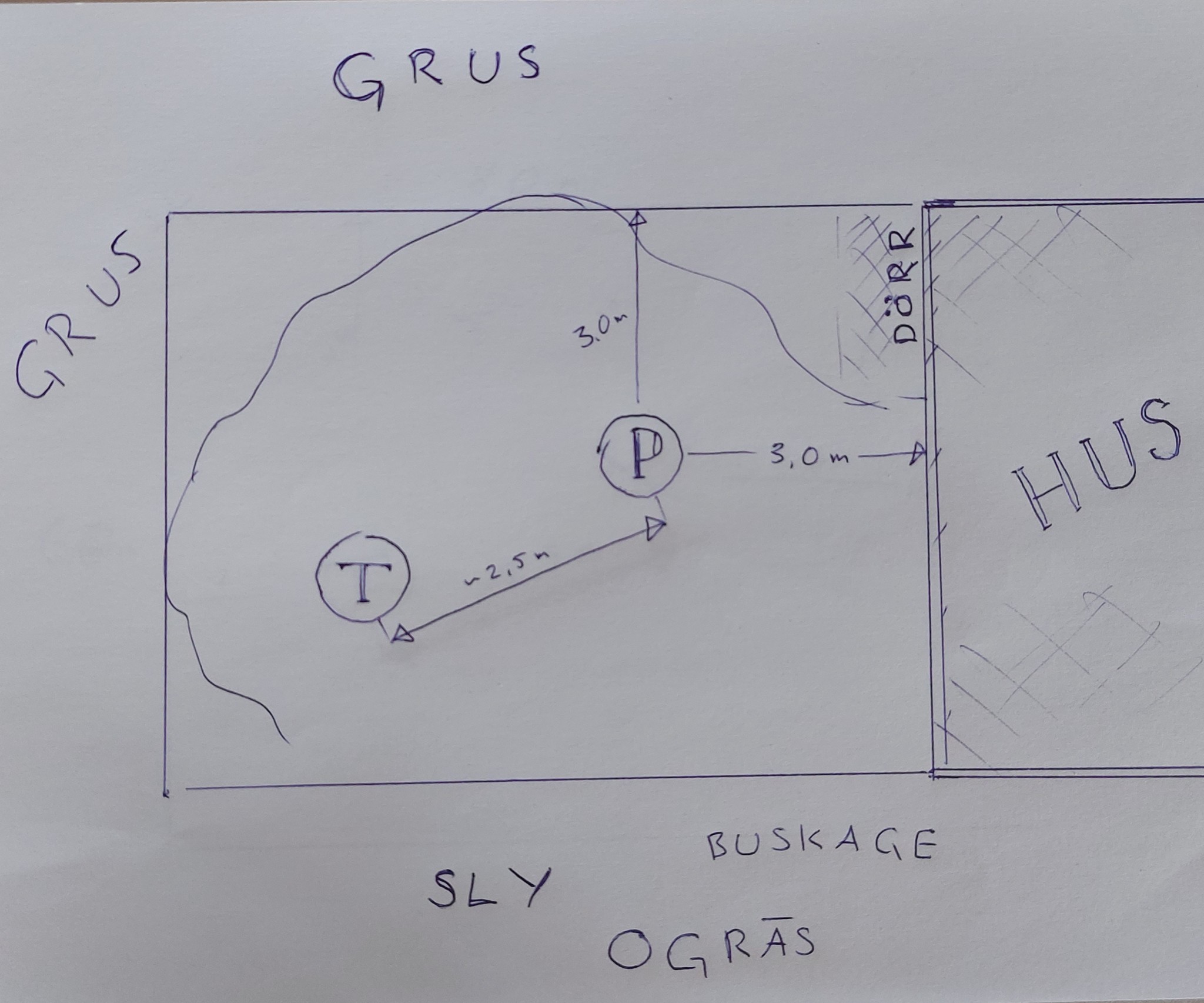 Planen är att täcka över hela planteringsytan med 2-3 st av Biltemas största presenningar, som sedan tyngs ned av överblivna stenplattor. Det blir ca 5 meter täckyta från parksliden i alla riktningar (utom stugan!!). All växtlighet förutom parksliden skärs ned och lämnas på platsen innan övertäckning . Parksliden "knäcks" i nivå med jorden, så att den lägger sig.