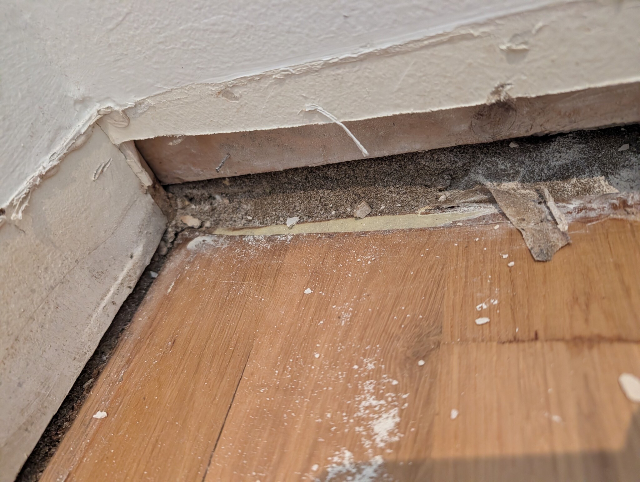 Men så såg jag sand inomhus och nu har jag tagit bort listerna och nedre delen av gipset.