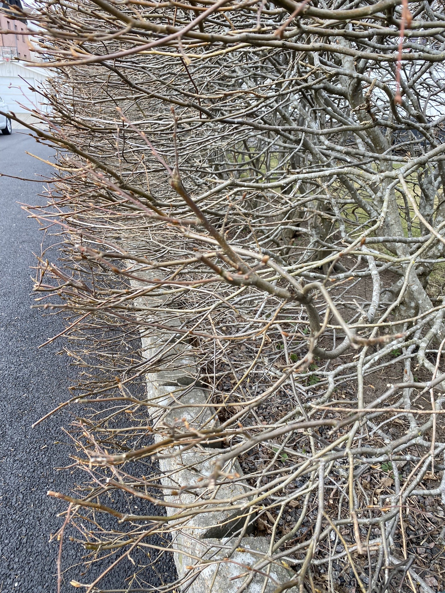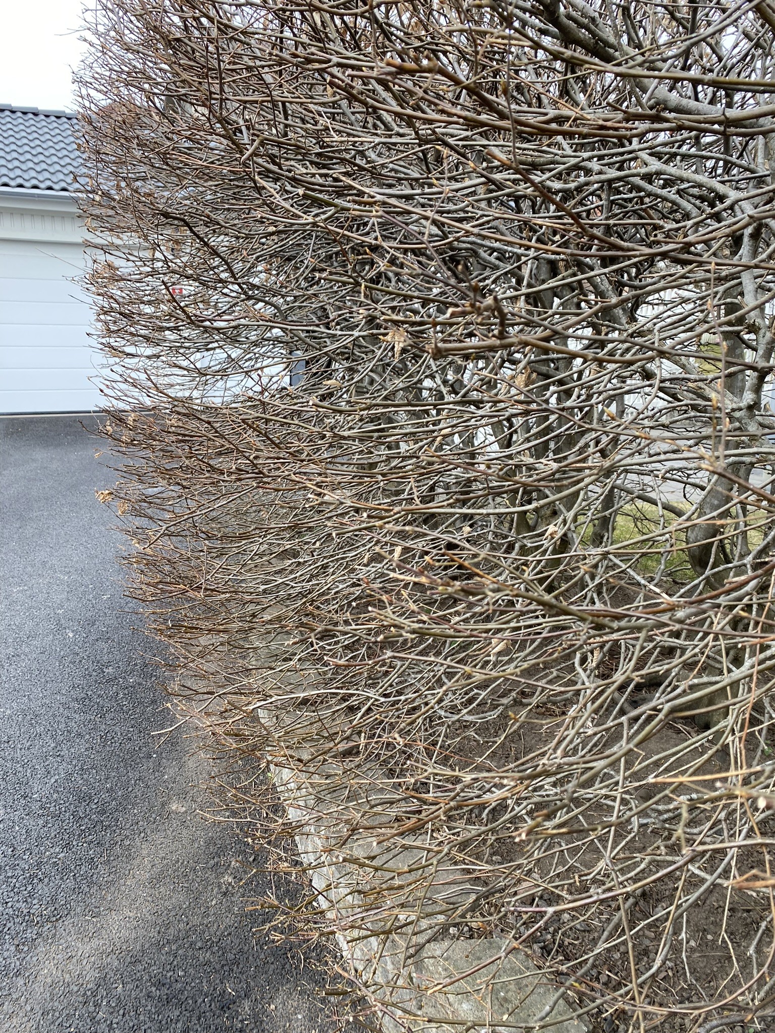 När jag kollar i detalj ser jag att då kommer de flesta grenar med knoppar försvinna, så antar att den kommer bli helt naken initialt? Men växer det ut nya nästa år är frågan. Stammarna står en bit in på tomten men jag antar att den fått växa på bredden för fort.