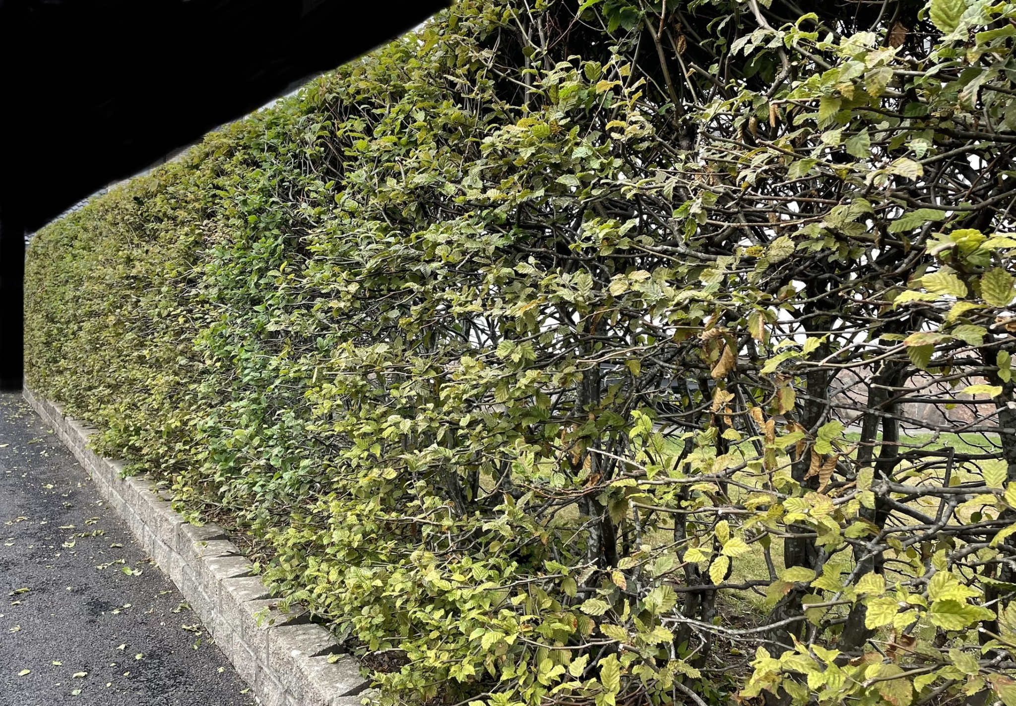 Klipp häcken lite bredare i basen så håller den sig tät hela vägen ner.