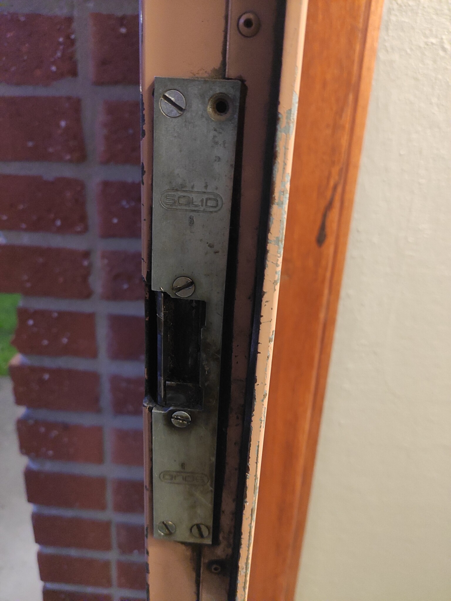Skruva bort stolpen (och indirekt elslutblecket) från dörrkarmen.