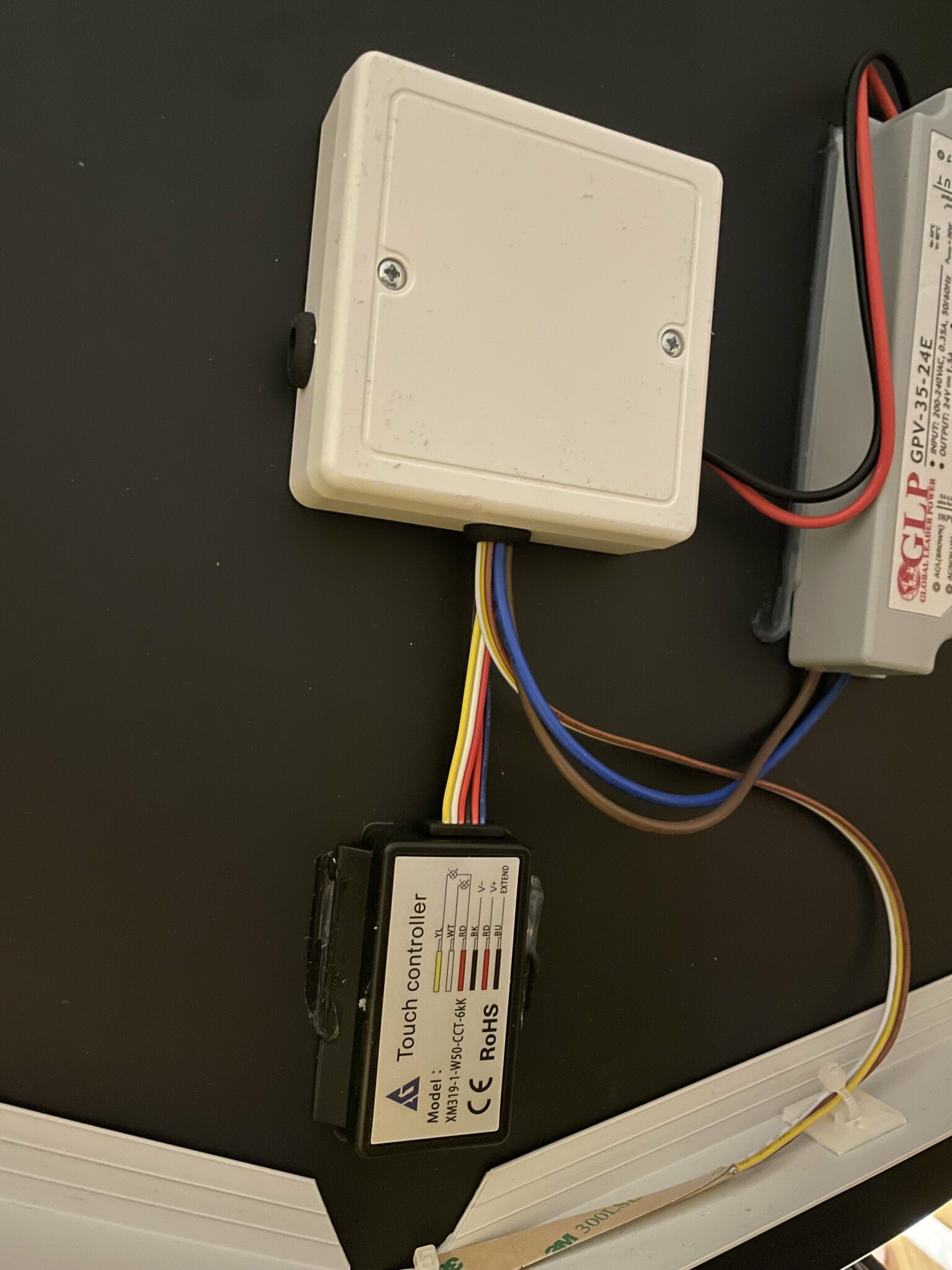 På baksidan sitter touchkontrollen som går vidare in i dosan på bilden.