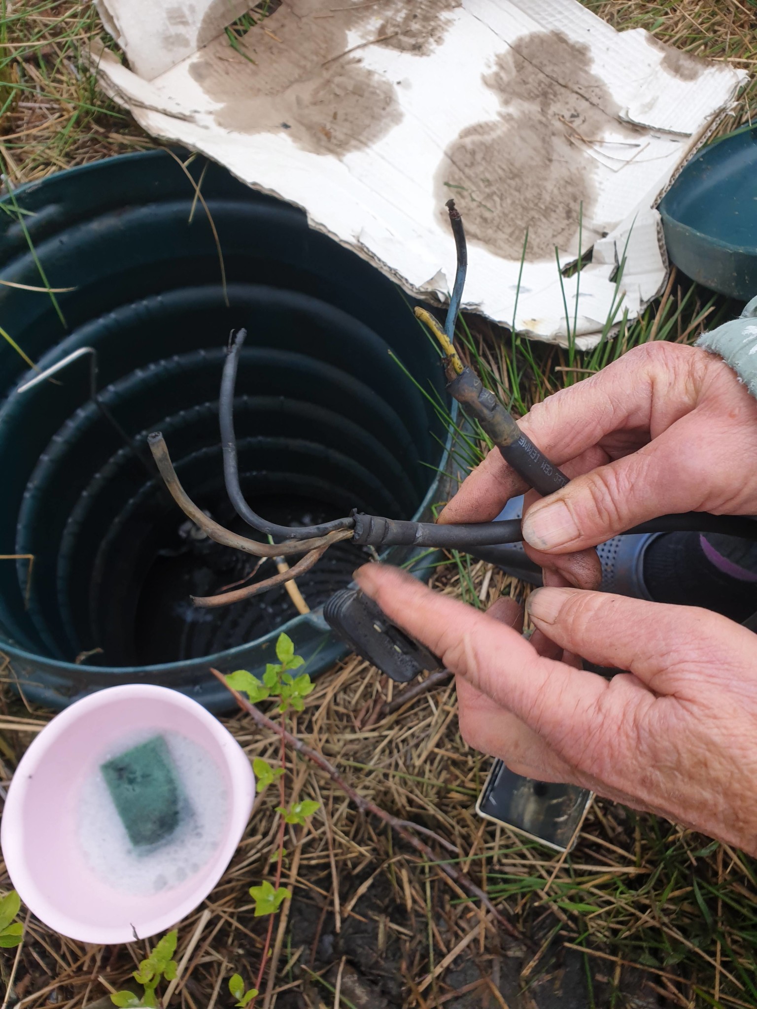 Det sitter en brytare ute vid brunnen som de bara går vidare från. Sen gick ledarna vidare till en dosa under brunnslocket där det hade geggat igen och blivit helt förstört. Där jag behöver hjälp hur det ska kopplas vidare, pump och nivån går in. De har varsin kabel.