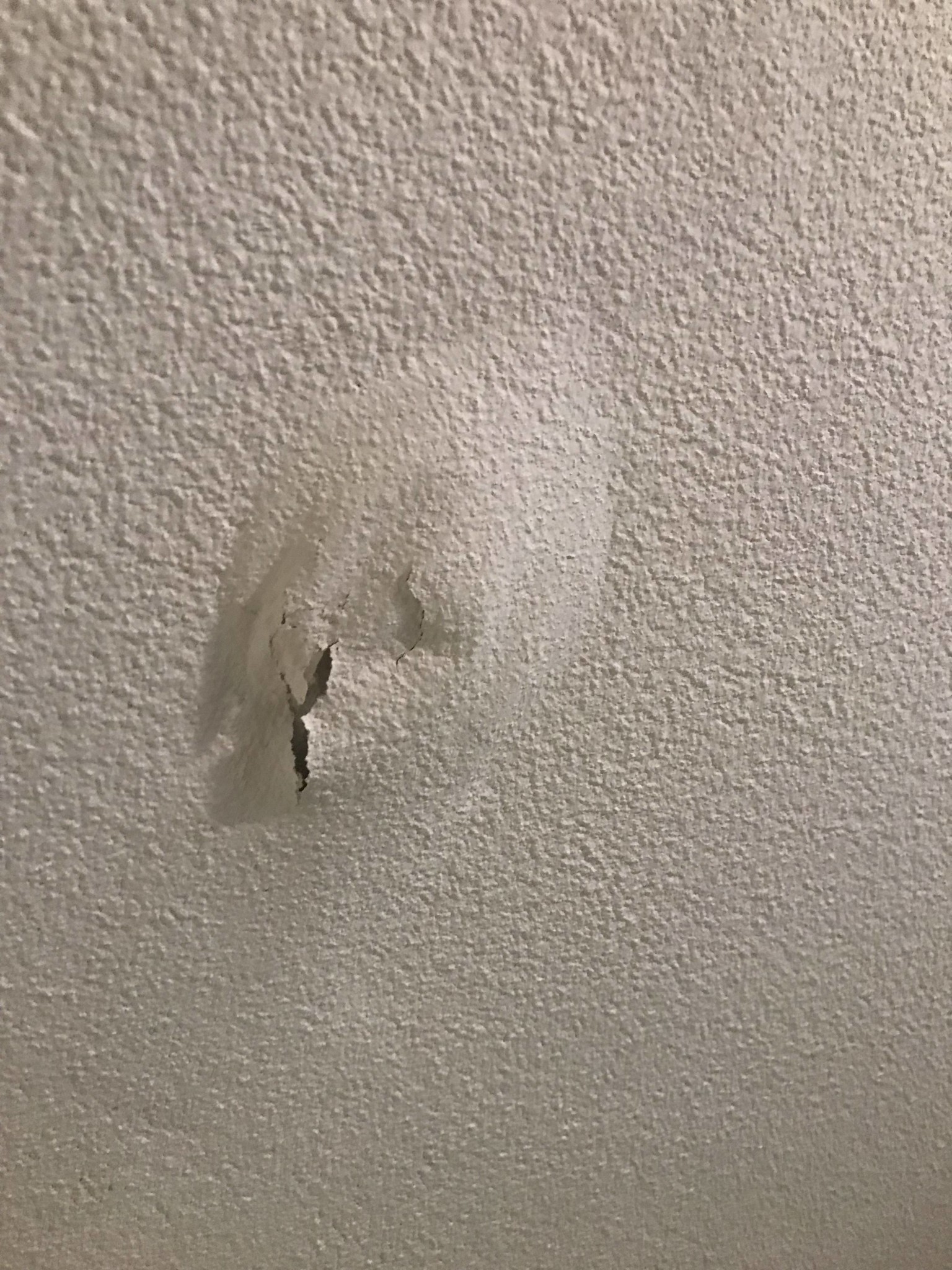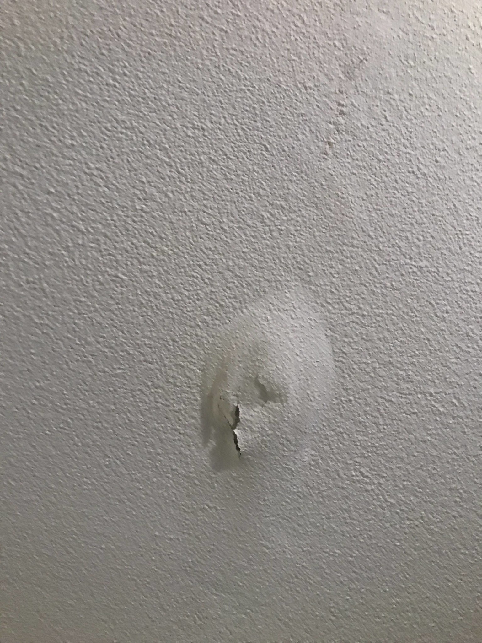Bor i en hyresrätt som är en gammal skola och har börjat lägga märke till en oroväckande stor bubbla/spricka i takets färg.