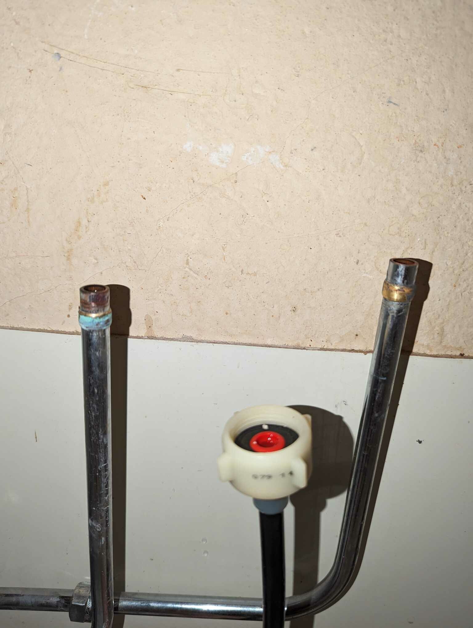 3. (Bild 3, rör ur vägg) Så här ser rören som kommer ut väggen ut. Finns det något som är uppenbart för den insatte som jag missar här? Är lite osäker på hur ansluter nya blandaren till dessa rör. Antar att jag saknar någon form av anslutning jag behöver köpa.
