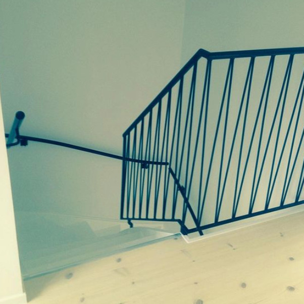 Vi ska bygga (svetsa) vårt egna skyddsräcke mot trappan. totalt är det ett 3,15 m långt "staket" och efter vad jag hittar i BBR 90 cm högt.