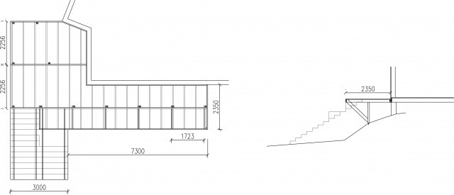 -Stolpskor i berg med 95x95 som vertikal bärning, konsol/snedstag 45x145 (eller kan konsolen vara mindre?). Mellanrum mellan stolpar ca 1700.