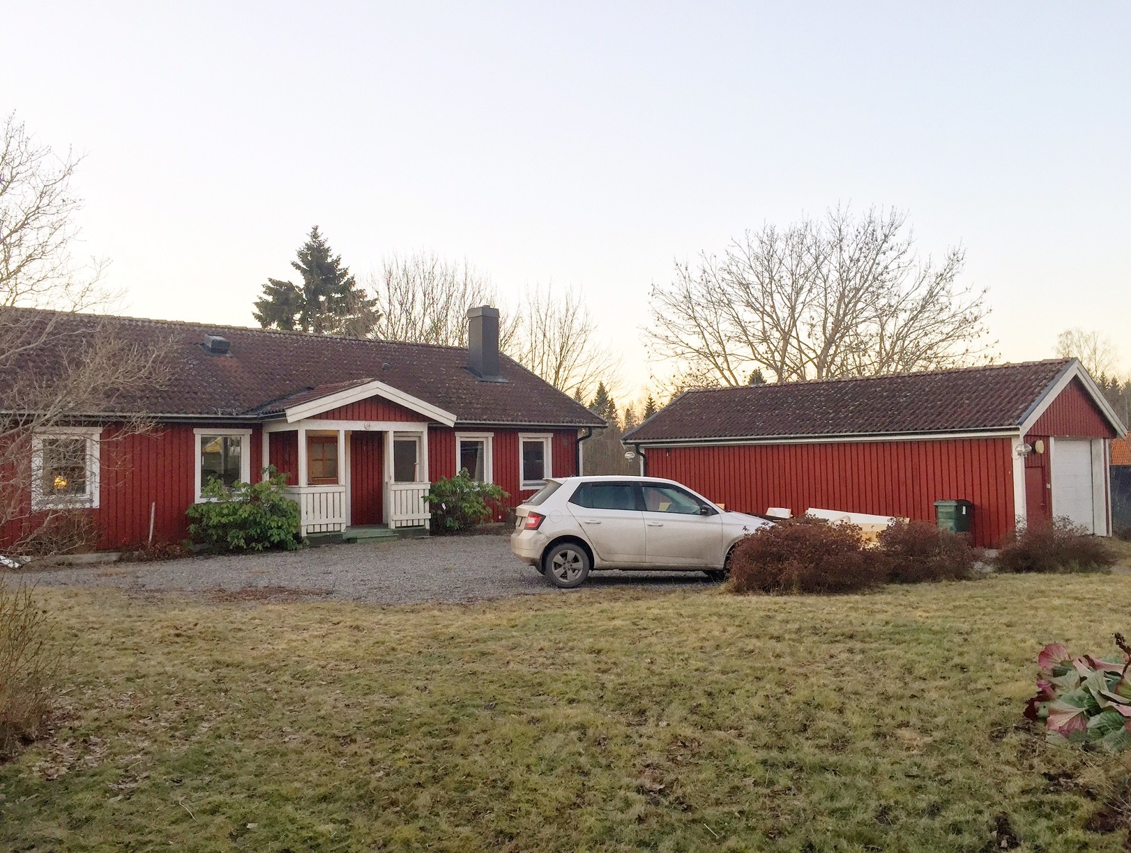 I övrigt blir det asfalt på uppfarten/parkeringen förutom en meter närmast huset och garaget där det blir grå plattor.