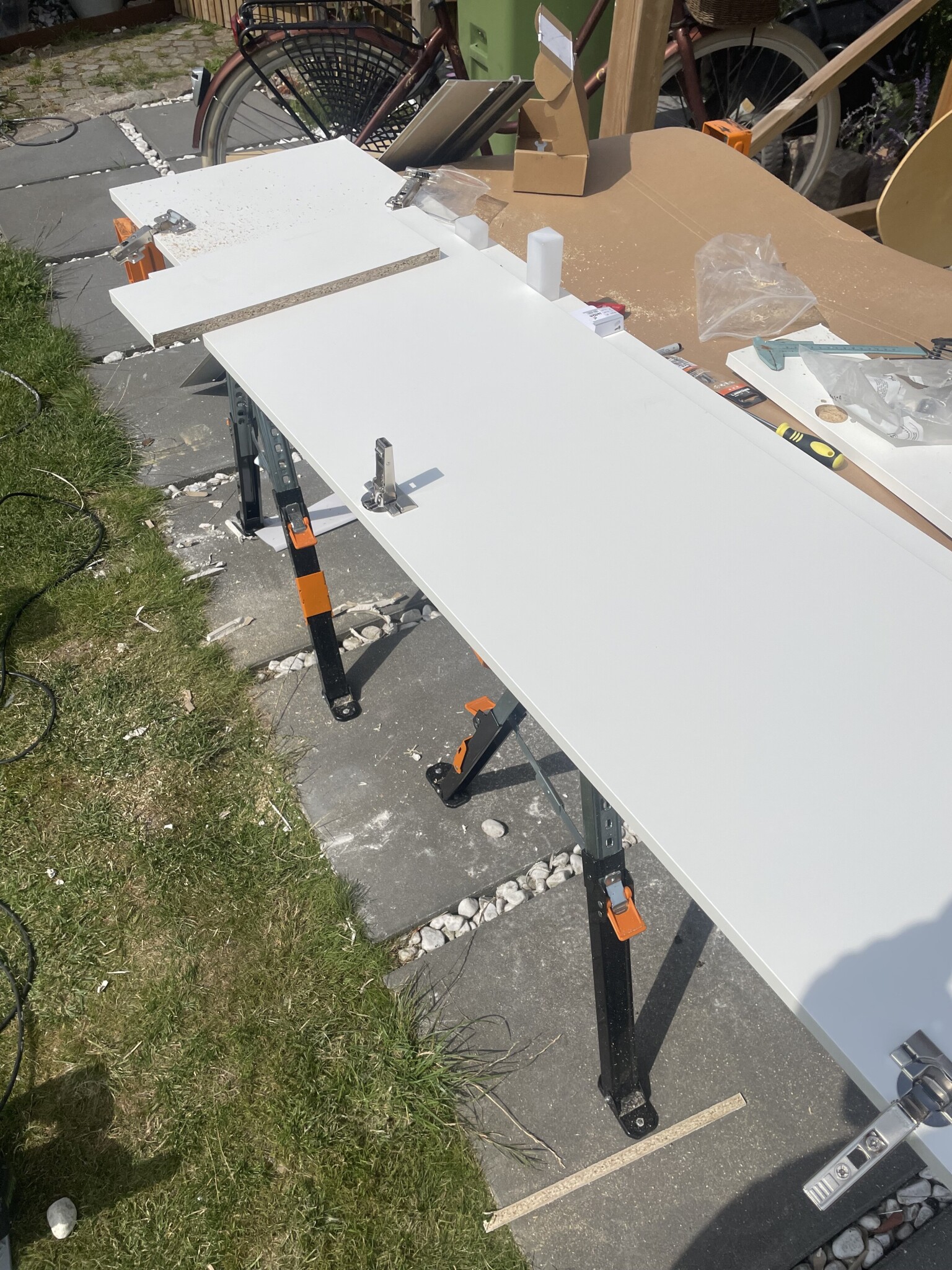 Var tvungen att kapa ner ikea luckorna. Och så behövdes nya grytor för gångjärnen. Beställde en jogg från amazon.