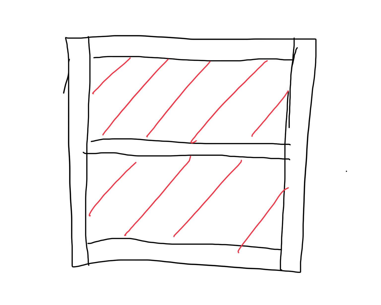 En enkel principskiss, 10 mm plast kombinerat med ett ramverk av ett 10 mm material (plywood eller massivträ) som limmas mellan två skivor med tunn board kan mycket väl bli material för skåpstommar med mera. Svart är lister, rödrandigt är cellplast. Gäller bara att tänka igenom var man vill ha hyllor och annat alternativt placera lister för att kunna göra hålrader osv.