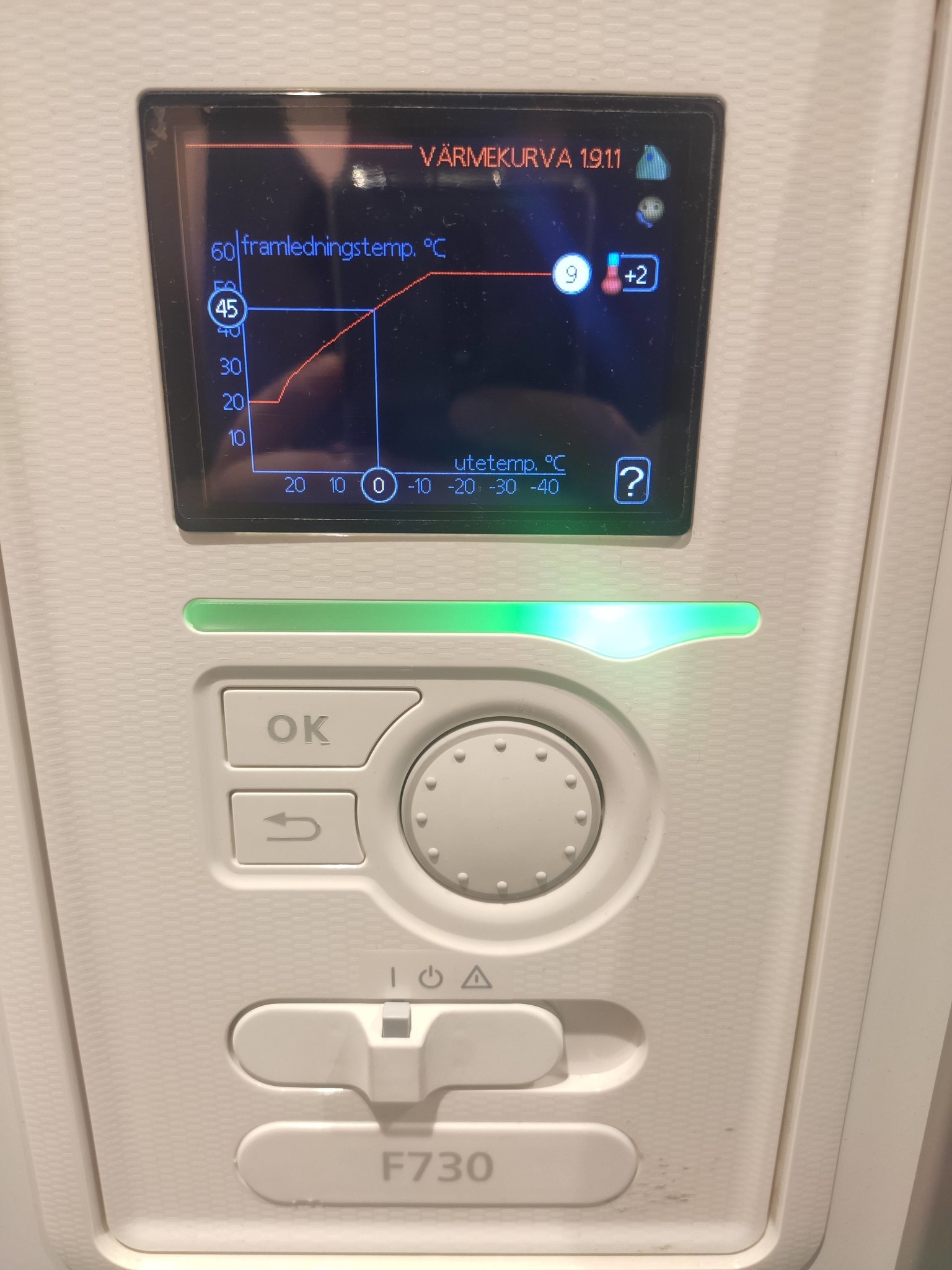 Hej! Ja förr gången så löstes problemet genom att vredet till höger om pumpen fick vridas från ett till tre. Nu ligger båda vreden på fyra men verkar inte hjälpa något alls. Laddar upp bild som visar framlednings temp .Ludde Jakobsson skrev:
