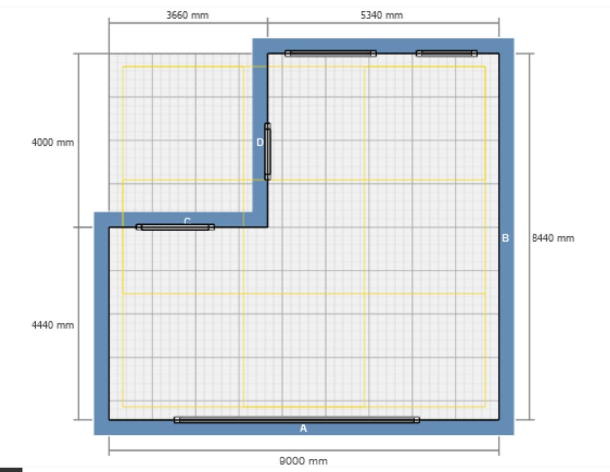 En möjlighet är att placera köket i hörnet A-B-väggarna i stället för B-C-väggarna eftersom det ger mer plats för en matplats, men då hamnar köket i stället mer i vardagsrummet än vid matplatsen så det är ju något som ni måste fundera över hur det känns.
