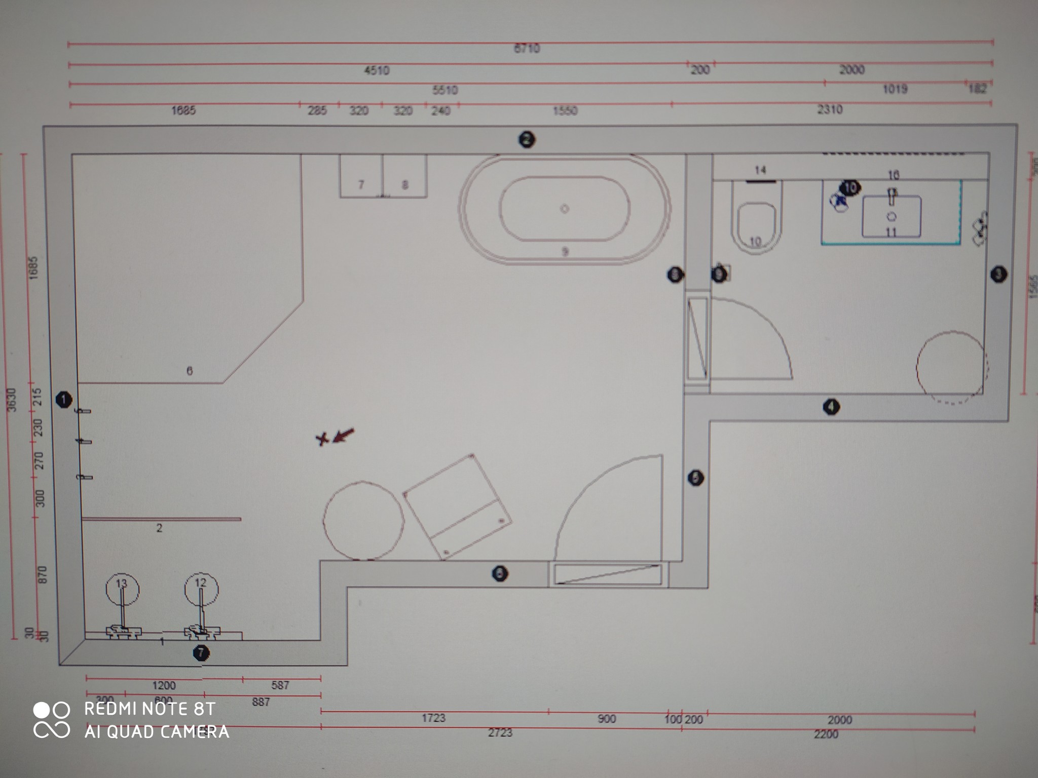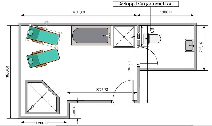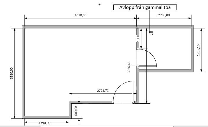 Placeringen av toaletten känns ju lite underlig och en mer normal placering vore att vrida den 90 grader. Kanske går att utnyttja befintligt avlopp bättre då också.