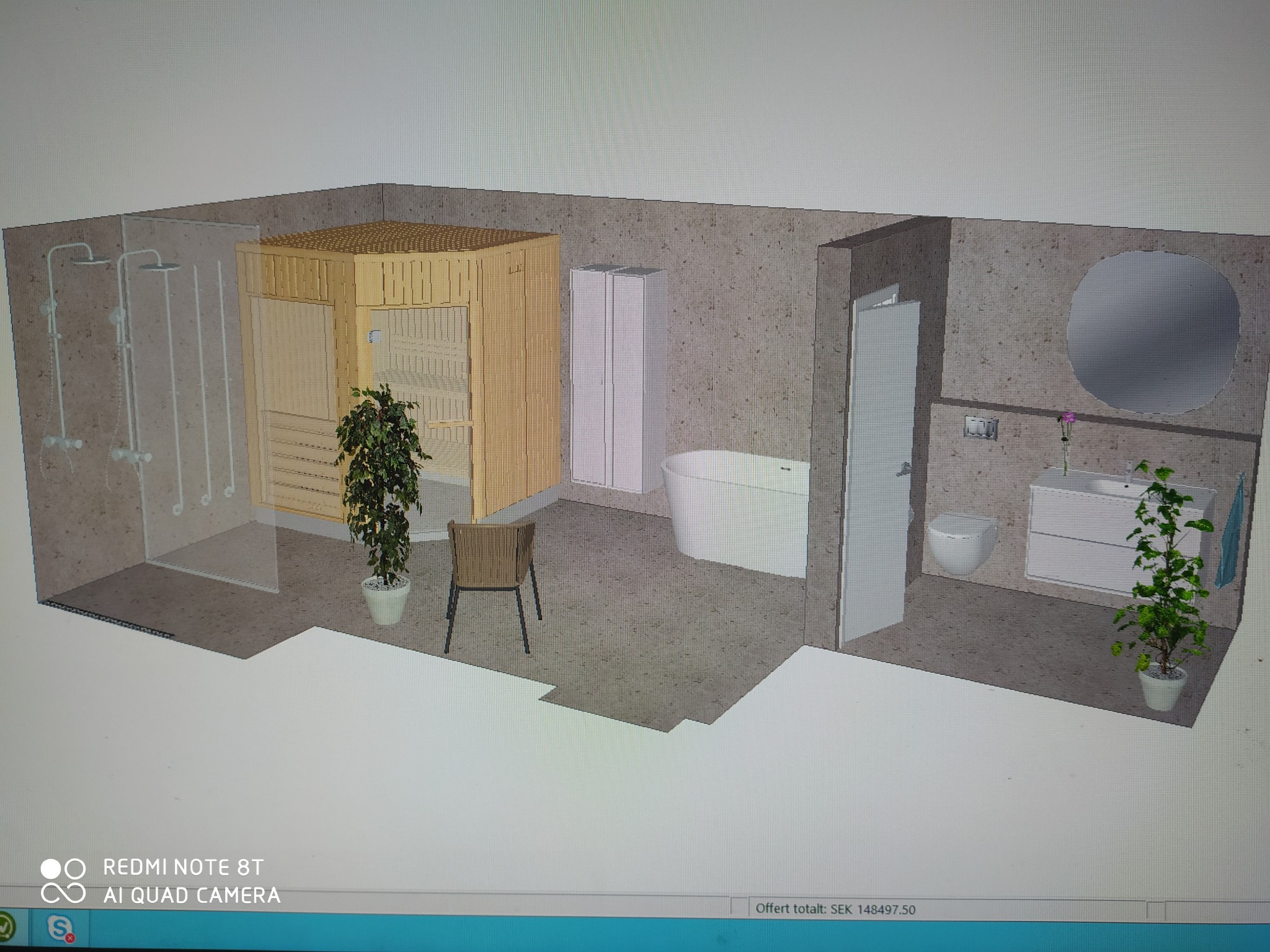 Tack för svar. Håller med om att toaletten känns lite konstigt placerad. Så som du beskriver det var den placerad tidigare, dvs benen nedåt och cisterner uppåt. Tanken var att försöka få till det så att det inte skulle kännas så trångt när man kommer in i toalettavdelningen. Men vi tar absolut med oss era tankar. Vad gäller dusch och badkar i lilla rummet så är det så klart en idé. Vi var dock inne på att ha toaletten där den varit för att slippa bygga ytterligare ett rum. Vill inte ha toalett och bastu i samma yta. Vi vill alltså kunna basta samtidigt som någon gör sina behov utan att någon ser så att säga.
