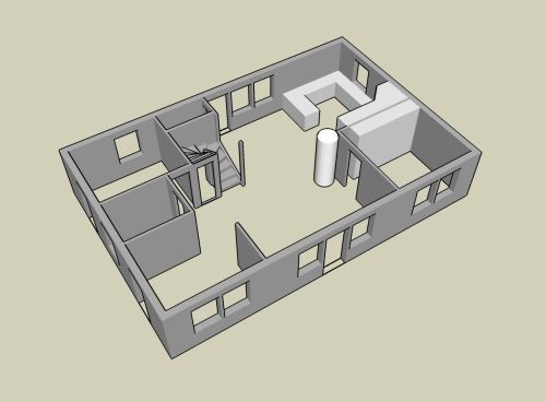 . Nu återstår bara att se om man kan bygga så öppet i mitten. Det blir nog en eller ev två balkar i taket eftersom ju hjärtväggen är så bruten.