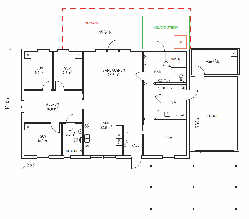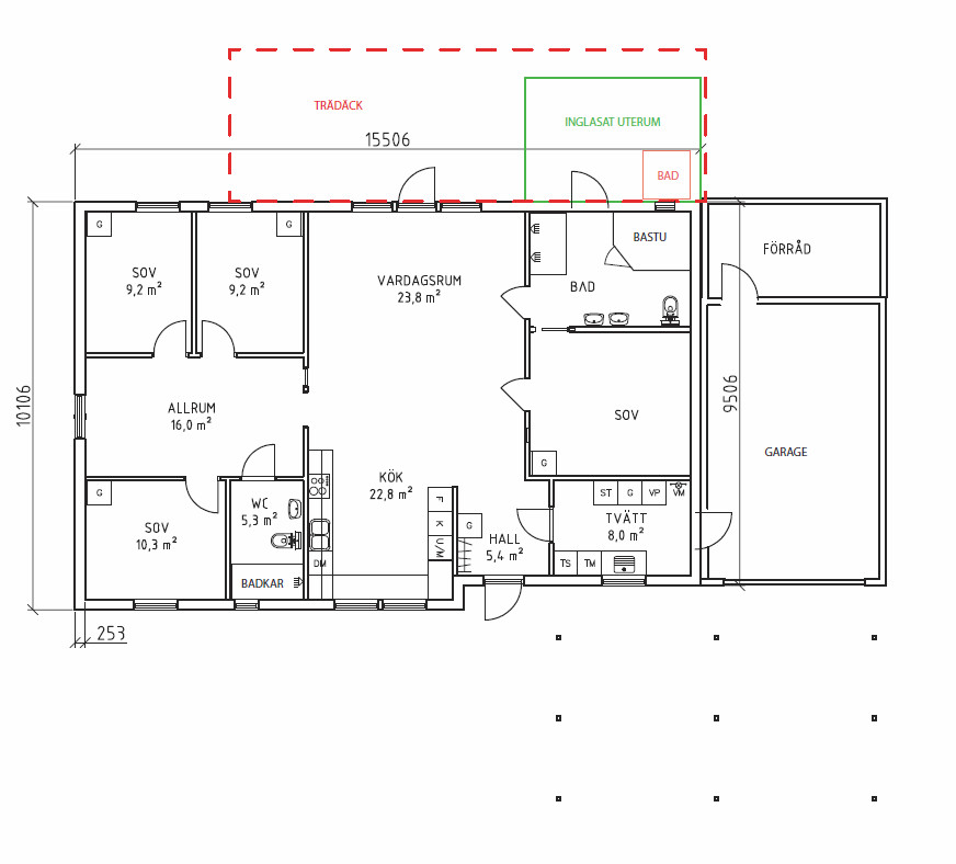 En vän gick dock på en nit när de gjorde stora sovrummet ca 50cm kortare. De fick inte sin ritning godkänd hos kommunen.