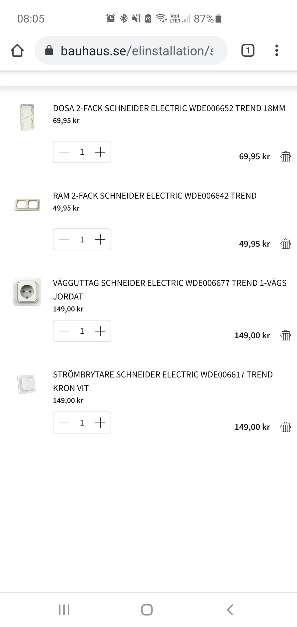 Här har jag iallafall plockat ihop produkterna du har installerade idag, dessa finns på bauhaus.
